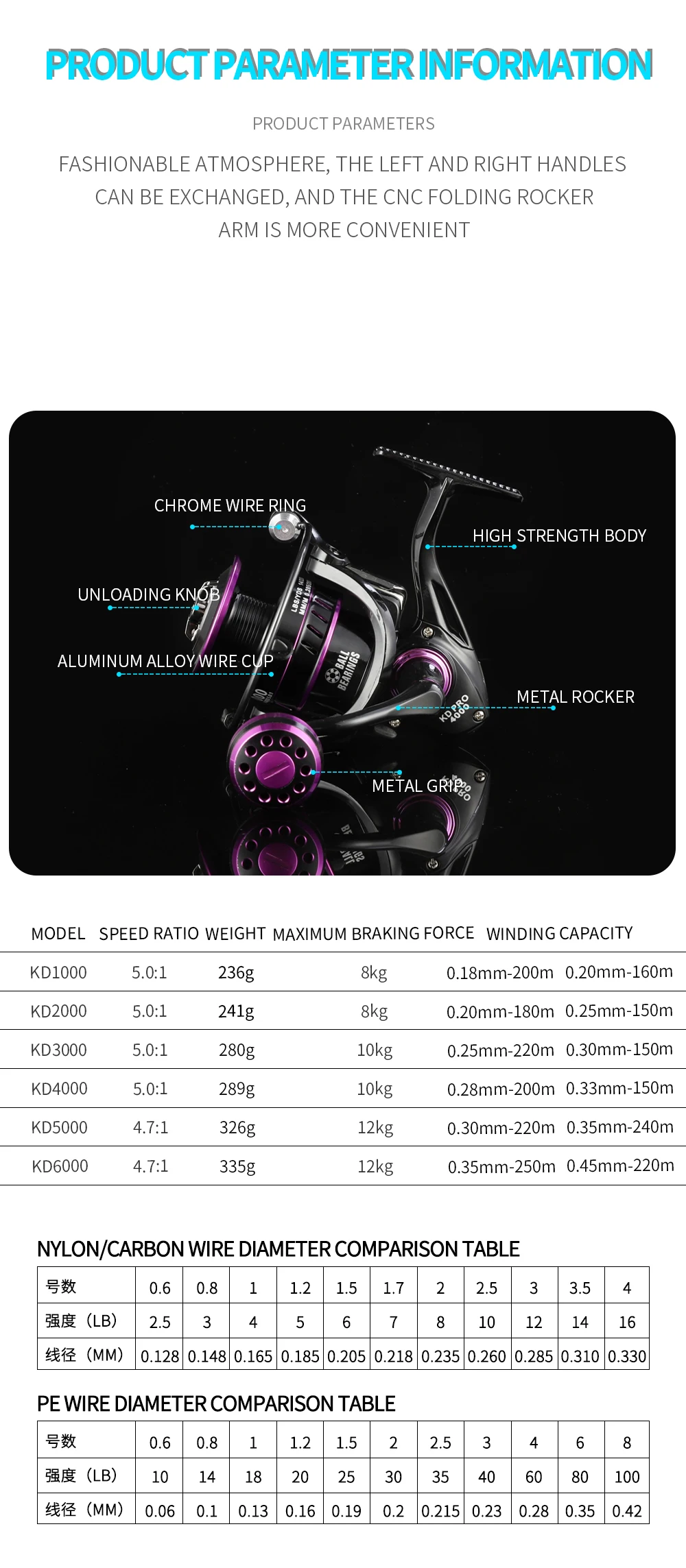 ALASICKA 5 + 1BB KD/KDPROMarrete giratorio de gran capacidad de metal de fundición larga para agua dulce y salada, carrete Roadrunner de gráfico Original