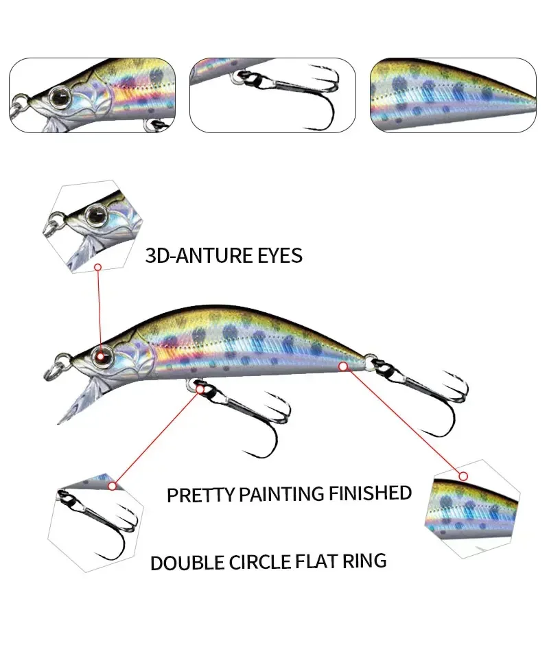 3. Los cebos tienen una pintura realista y ojos 3D vívidos, hacen que el cebo parezca peces reales nadando en el agua durante la pesca.