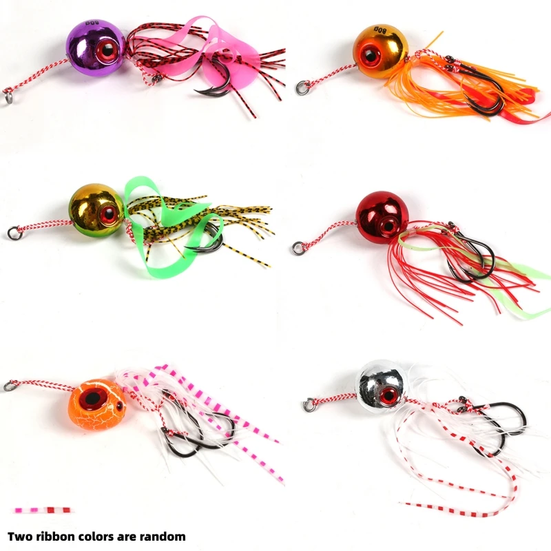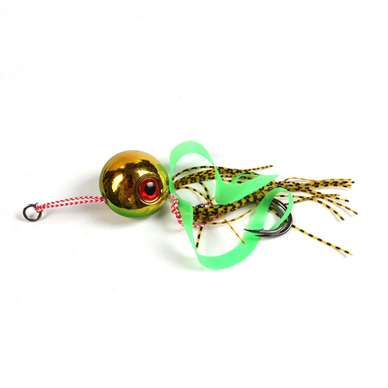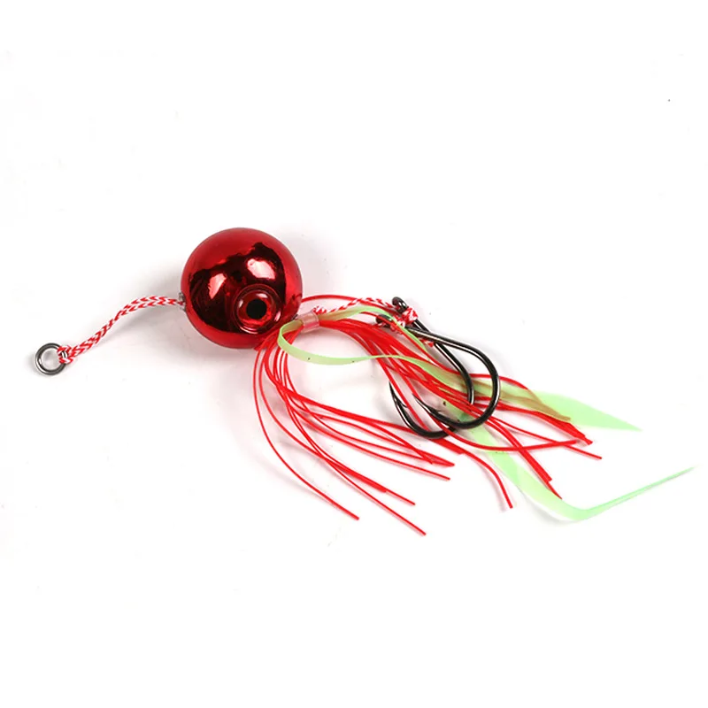 ALASICKA 60G plantilla de hundimiento rápido de Metal de aguas profundas cabeza grande con faldas de goma anzuelo de asistencia para agua salada señuelo de pesca deslizador Tai Kabura