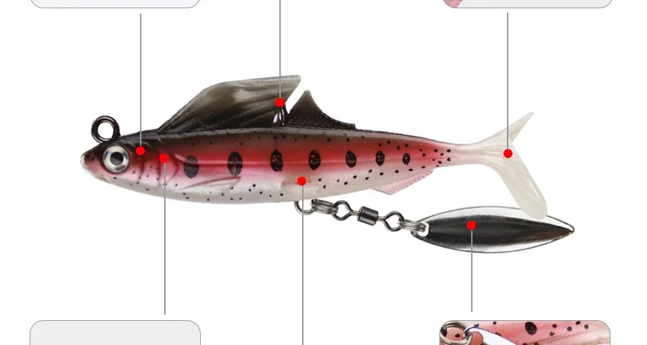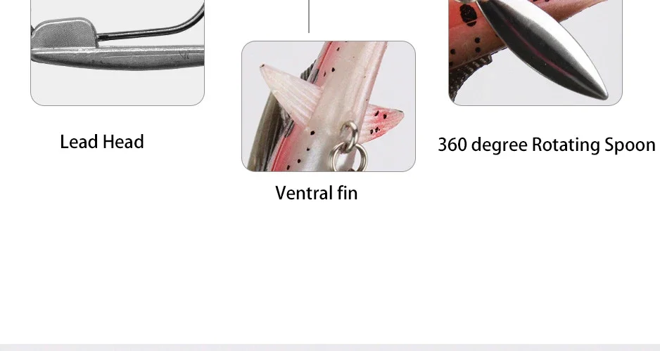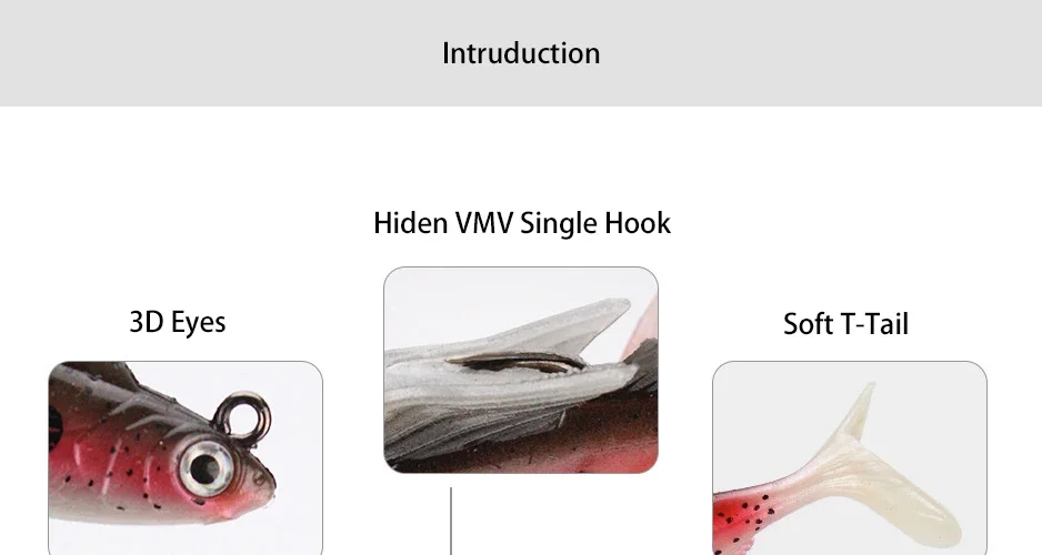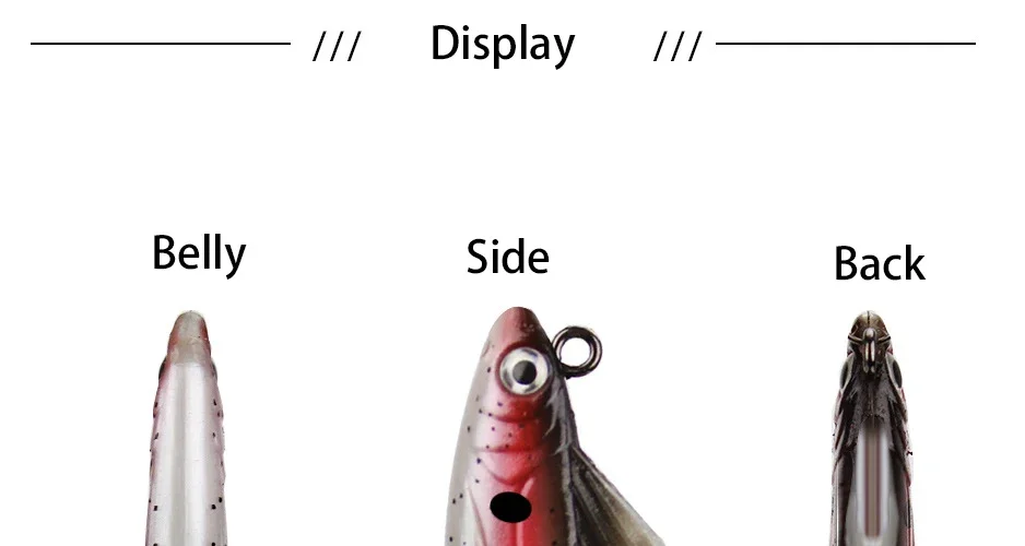 Gracias a su diseño simulado, este señuelo blando biónico tiene ojos de pez simulados en 3D para una apariencia realista.Además, sus colores brillantes y sus lentejuelas reflectantes están diseñados para atraer fácilmente la atención de los peces.