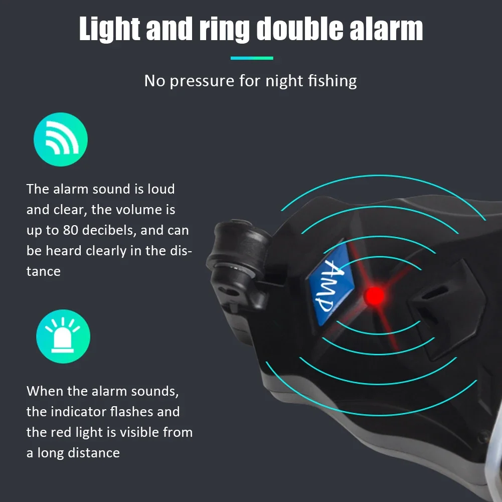 El dispositivo de alarma se activa mediante un sensor de microoscilación, que es más sensible y puede funcionar normalmente cuando el hilo de pescar está apretado.Modo de alarma doble de anillo de luz para filtrar señales falsas.