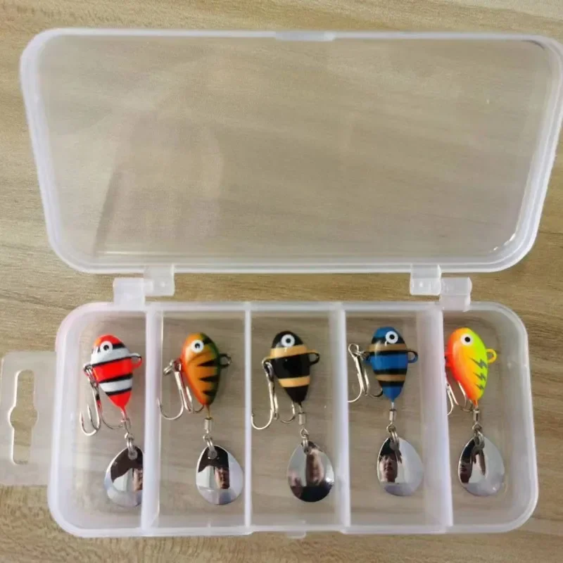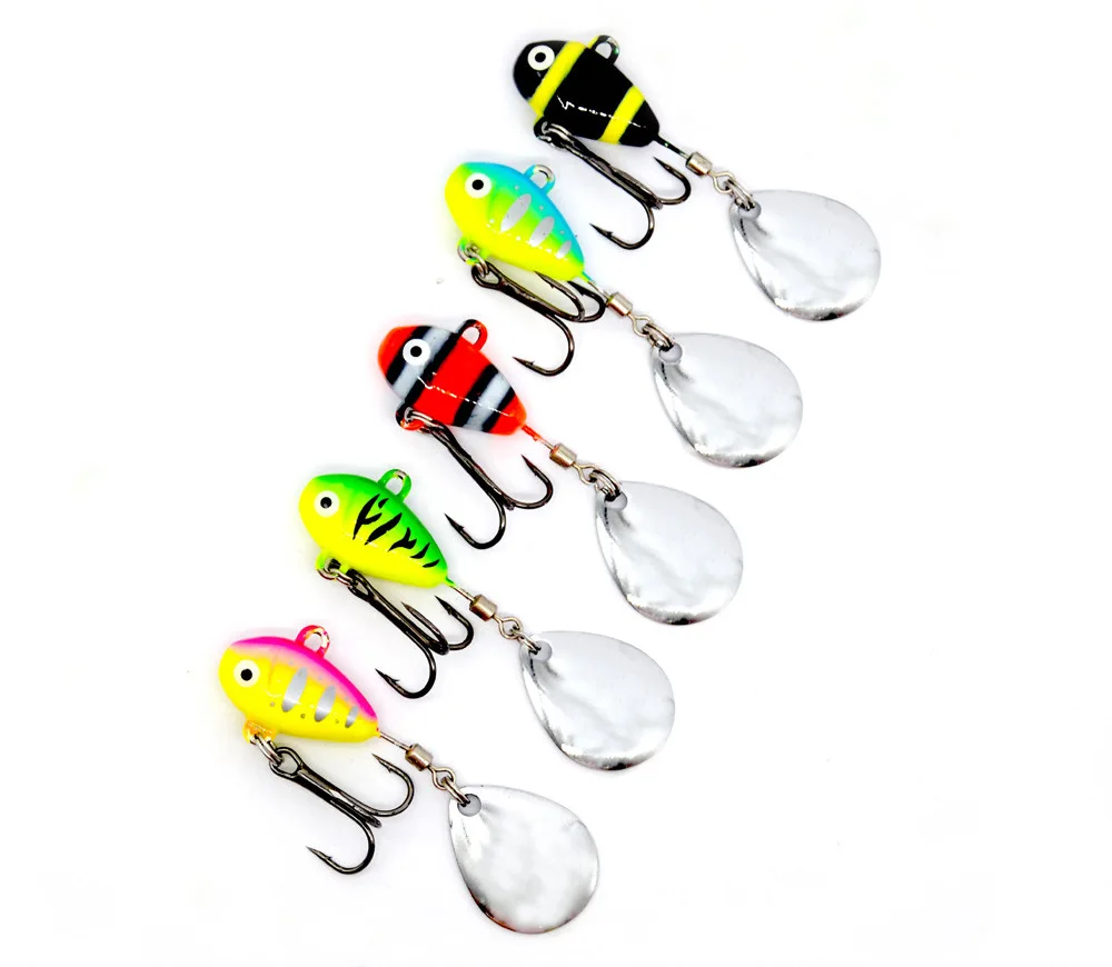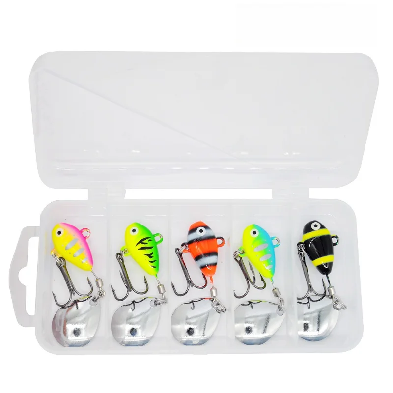SEÑAS DE PESCA VIB.Paquete de 5 señuelos de pesca VIB con anzuelos triples.Todos estos señuelos de pesca utilizan una cola de hoja de metal diseñada, creando un ruido que los peces no pueden ignorar mientras se mueven por la superficie del agua.