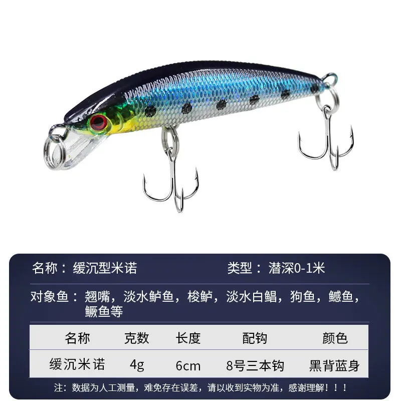 ALASICKA-señuelo Mino de hundimiento lento, profundidad de buceo de 0-1m, 60mm/4g, con anzuelos Sanbon de tamaño 8, pesca de carpa, cascabel incorporado, bola de acero