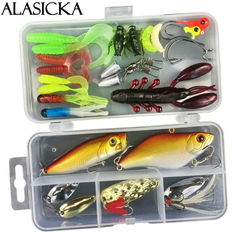 ALASICKA-señuelo de natación completo para principiantes, 28 piezas, 115g, Kit de pesca inicial, combinación multifuncional, accesorios de pesca con señuelo