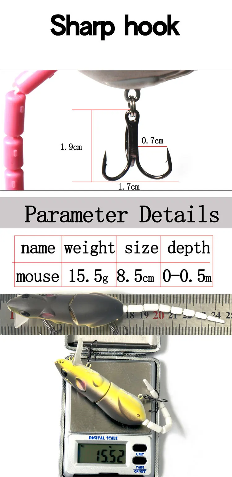 ALASICKA-señuelo de ratón de varias secciones, 15,5g/15,5 cm, Topwater, rata, Wakebait, rata, pececillo, Wobbler, señuelos de lubina para Pesca