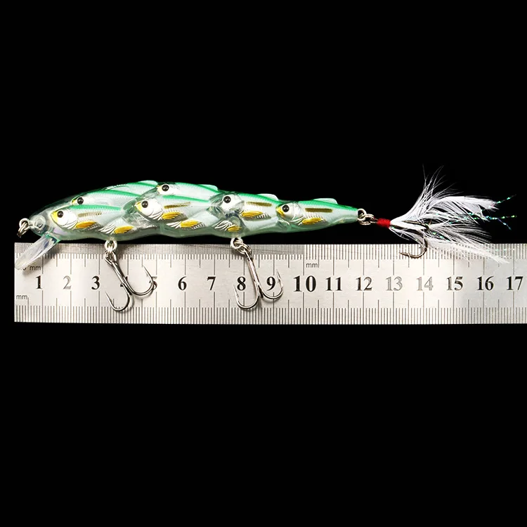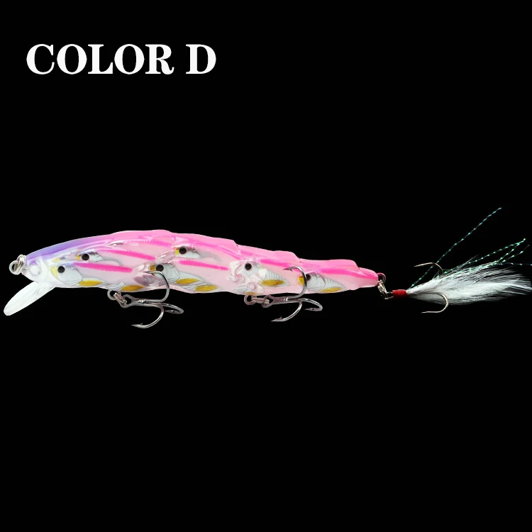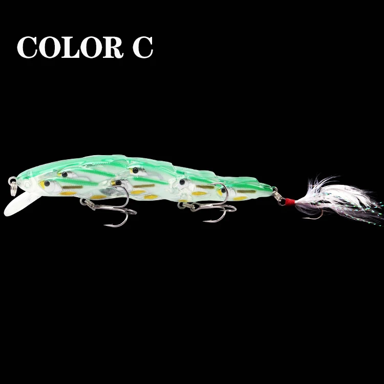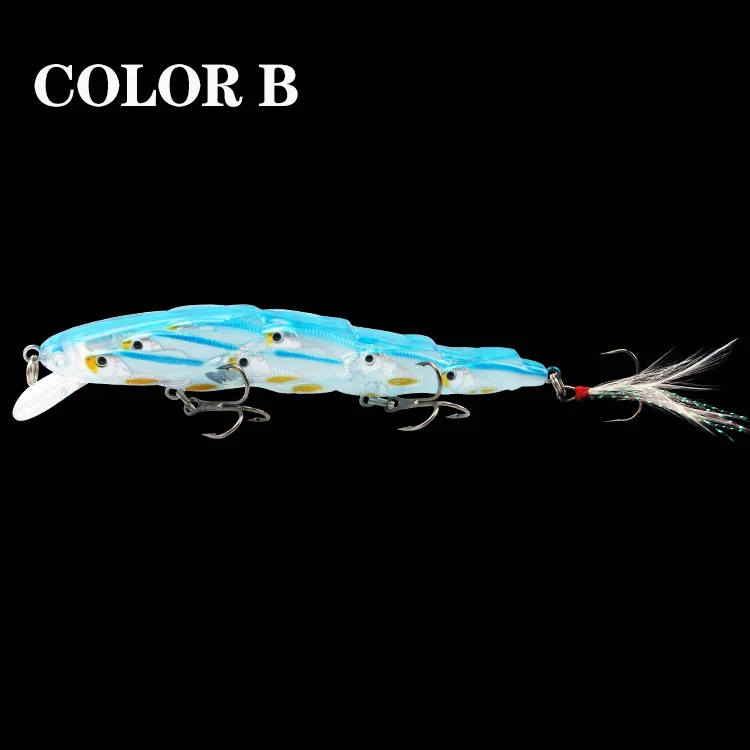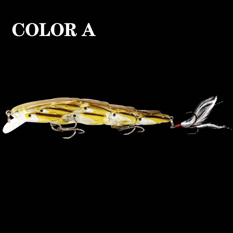 Los ojos 3D lo convierten en una herramienta ideal para los entusiastas de la pesca.El cuerpo colorido hace que sea fácil captar la atención de los peces.Acción realista en el agua como una multitud de peces reales nadando en el agua.El efecto visual del pez señuelo es excelente.Lente ojo de pez 3D: ojos de simulación 3D, grandes y brillantes, con mejor efecto de reflexión.Estilo de natación realista, nadando a varias velocidades. Y atraer a los peces a morder.Especificaciones:Color: 5 coloresTamaño: 12cmPeso: 15gMaterial: ABS de alta calidadGancho: Gancho de pluma reforzado de acero de alto carbonoPez objetivo: Lubina, perca, LucioAdecuado para aguas: todas las aguasCantidad * 1 piezas