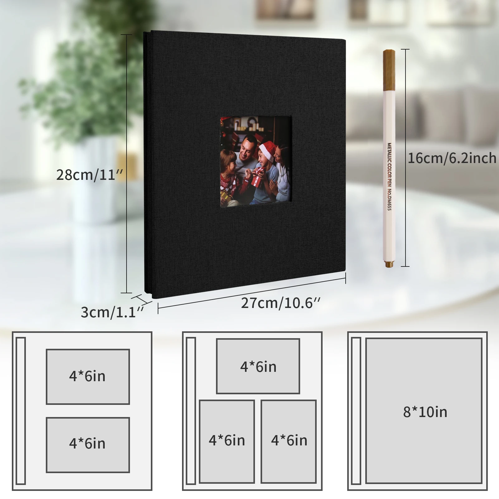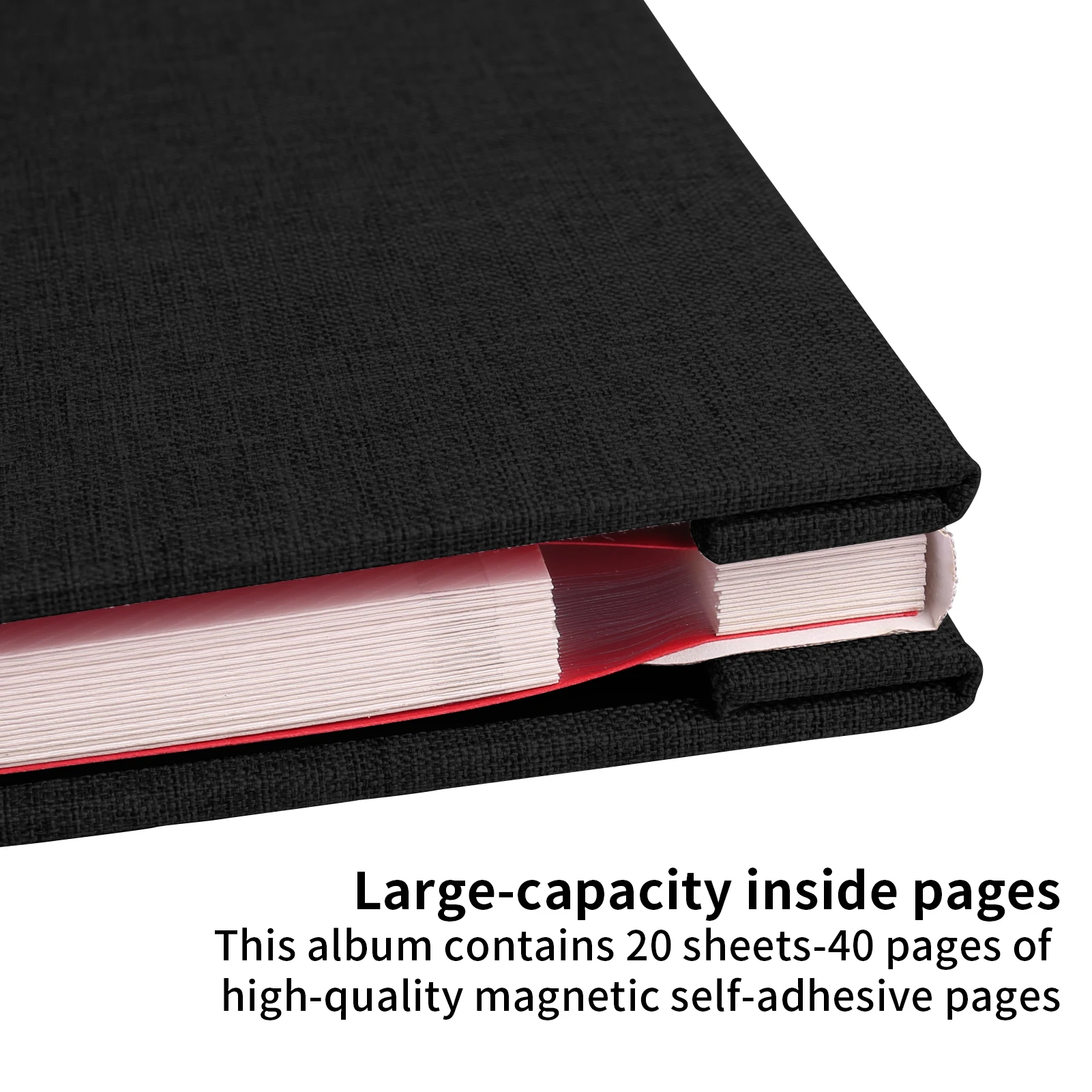 Tamaño: el tamaño externo es largo 11 x ancho 10,6 (pulgadas), largo de página autoadhesivo interno 10,8 x ancho 8,6 (pulgadas), 20 hojas/40 páginas, puede contener fotos de 120 4x6 pulgadas o 40 8x10 pulgadas