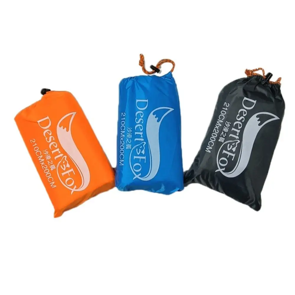 Se utiliza como lona para el piso de la tienda para evitar que la tienda se moje.Tiene 4 agujeros que se conectan con la esquina de la tienda de campaña de 4 postes.