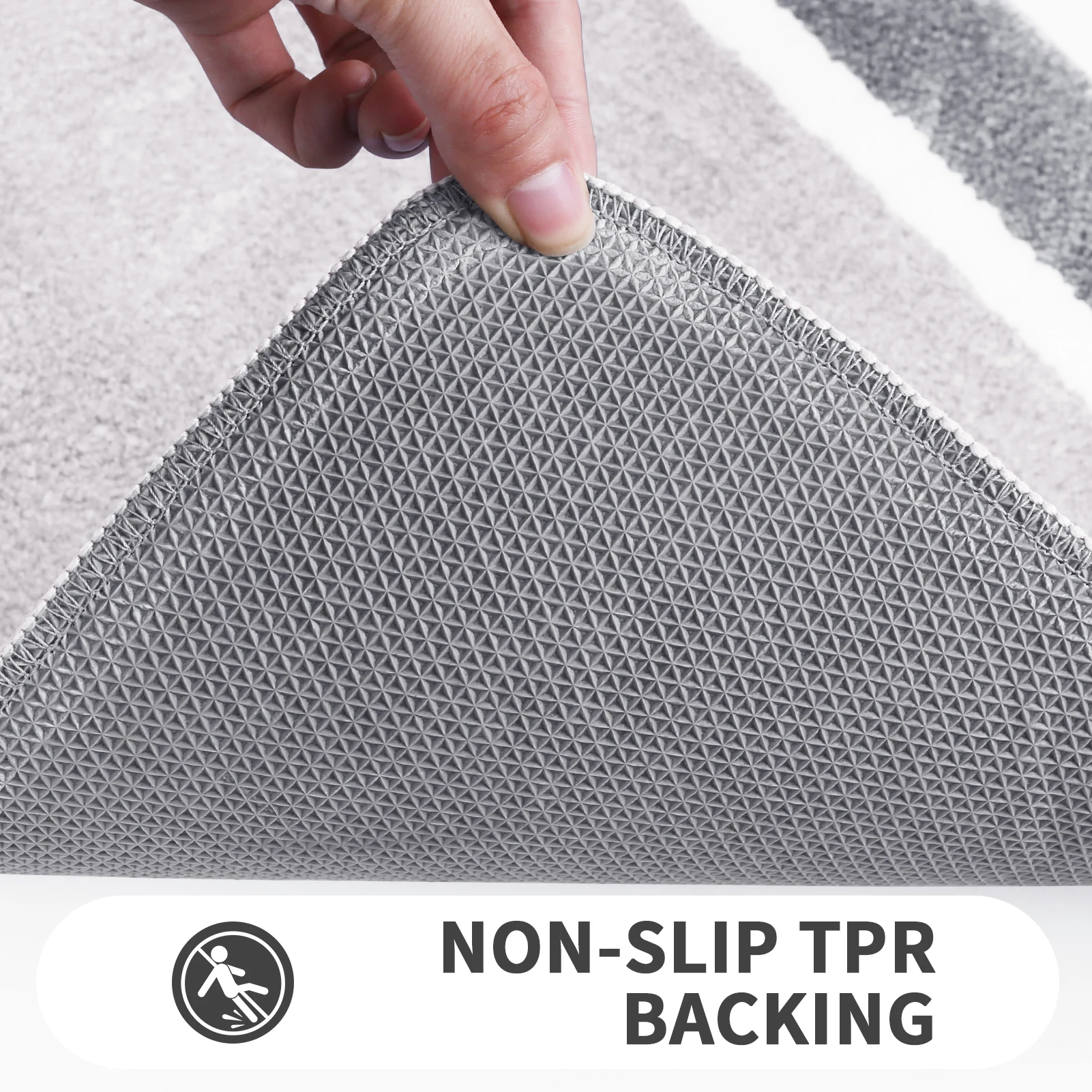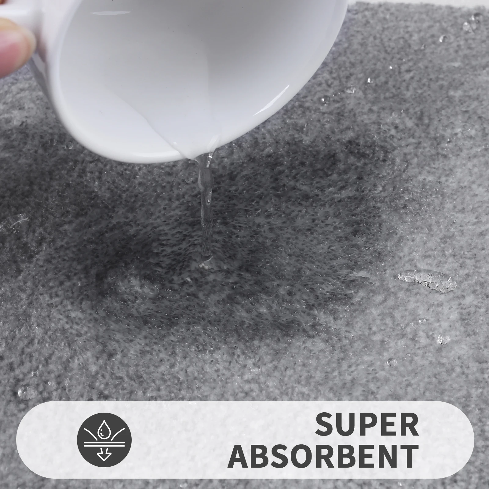 [Ultraabsorbente y de secado rápido] Nuestra alfombra de baño cuenta con un suave tejido de microfibra peluda que evita que el agua gotee sobre sus pisos mientras sale del baño, la ducha o mientras se prepara en el fregadero.Además, el pelo profundo de la alfombra atrapa eficazmente la humedad, permitiéndole secar rápidamente y dejar la alfombra limpia y seca.