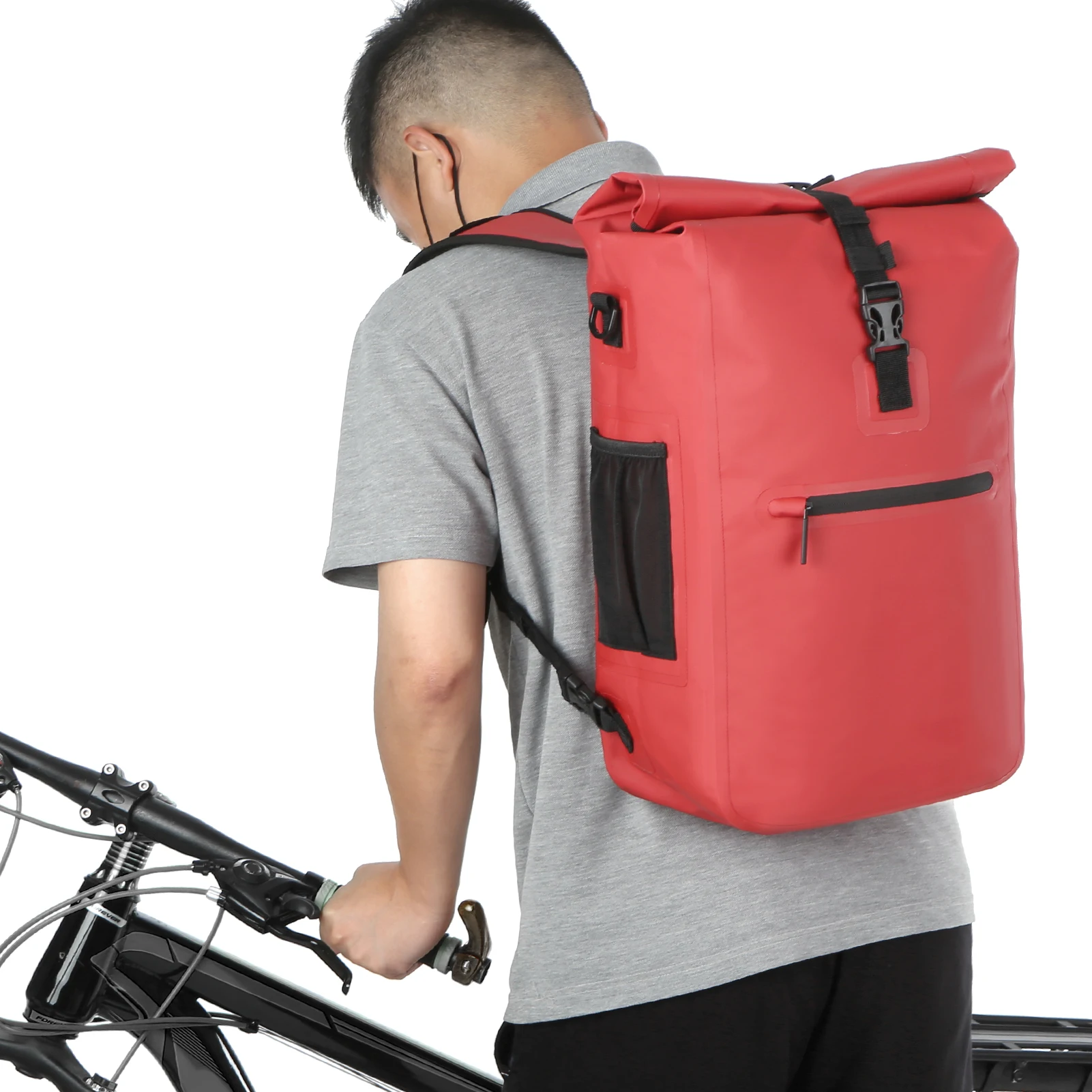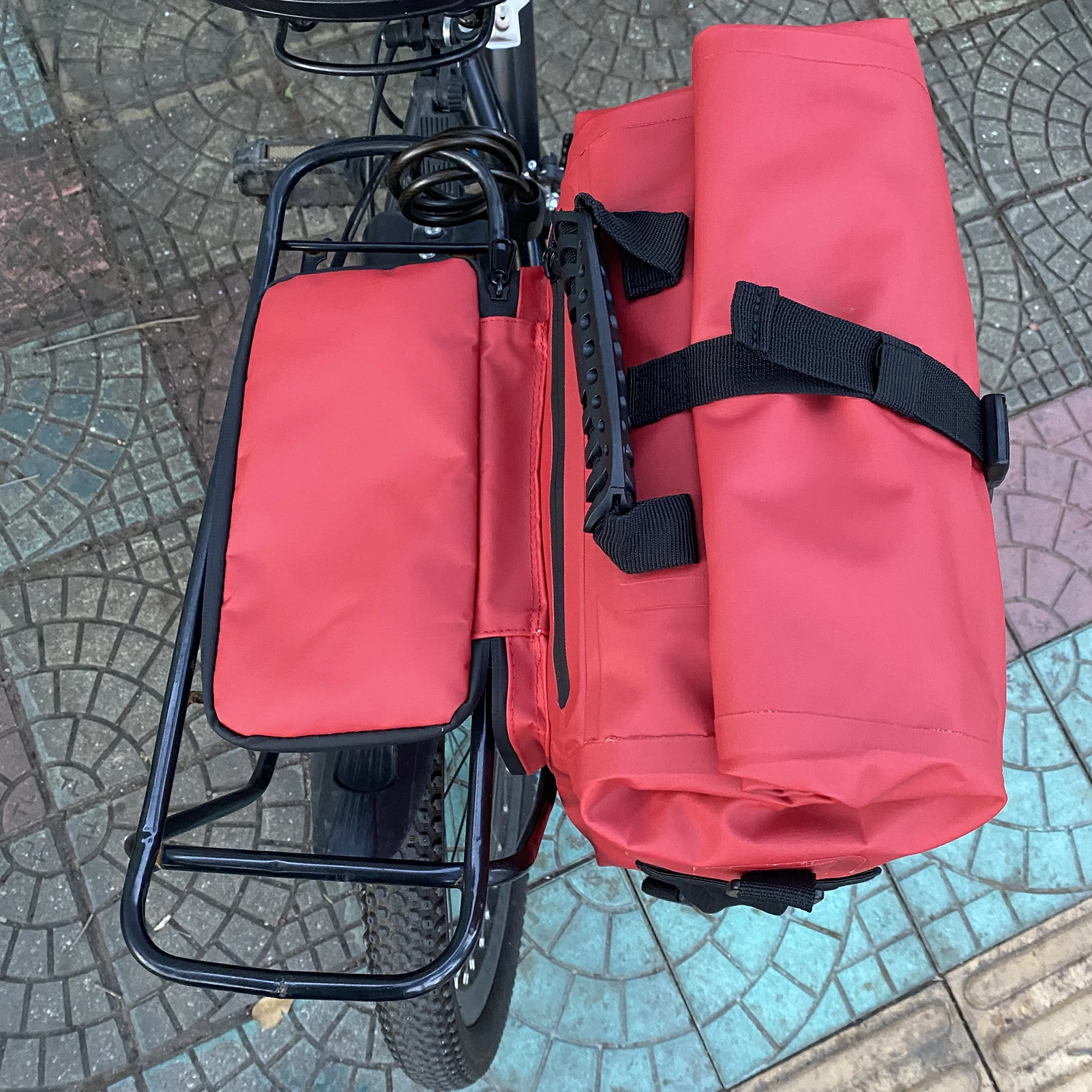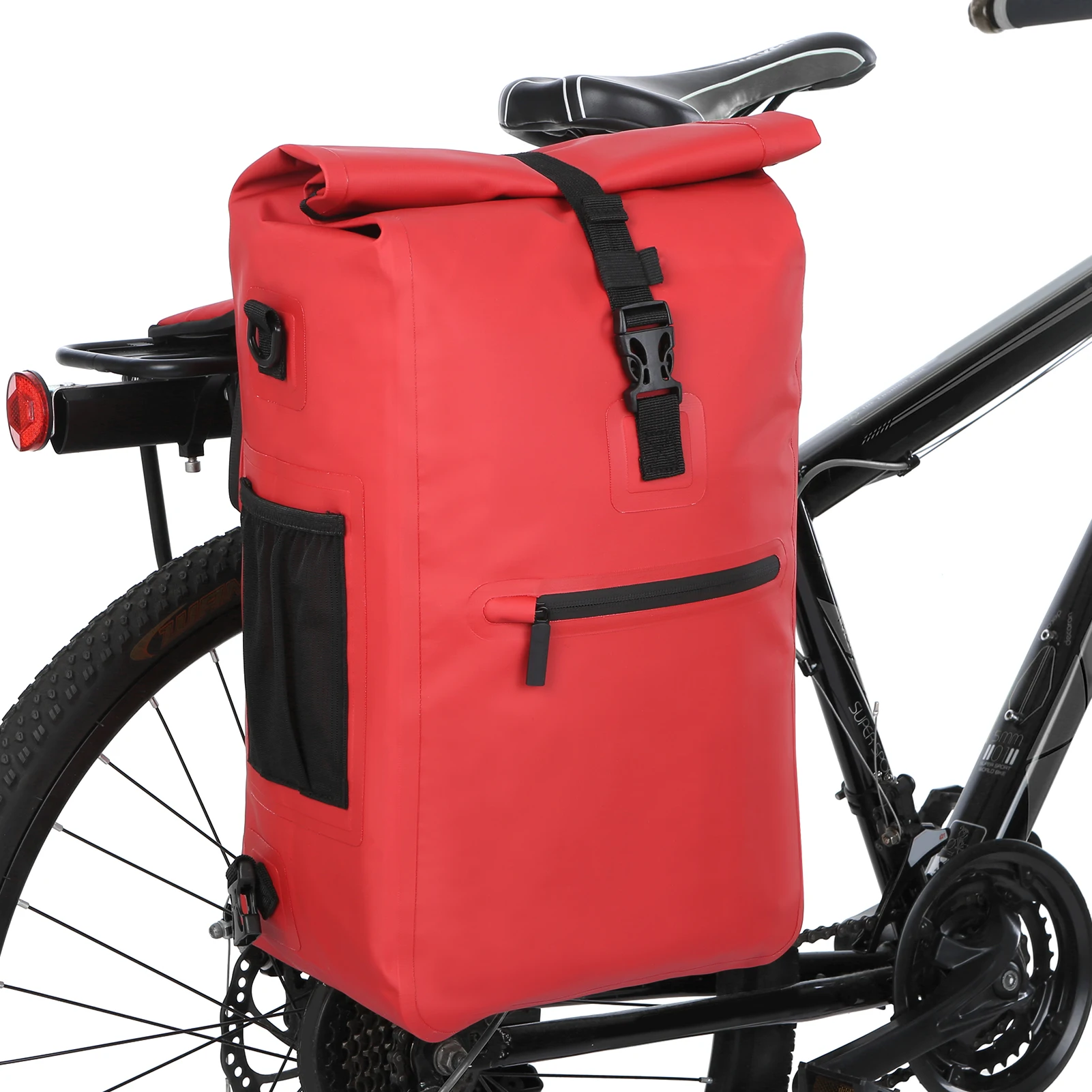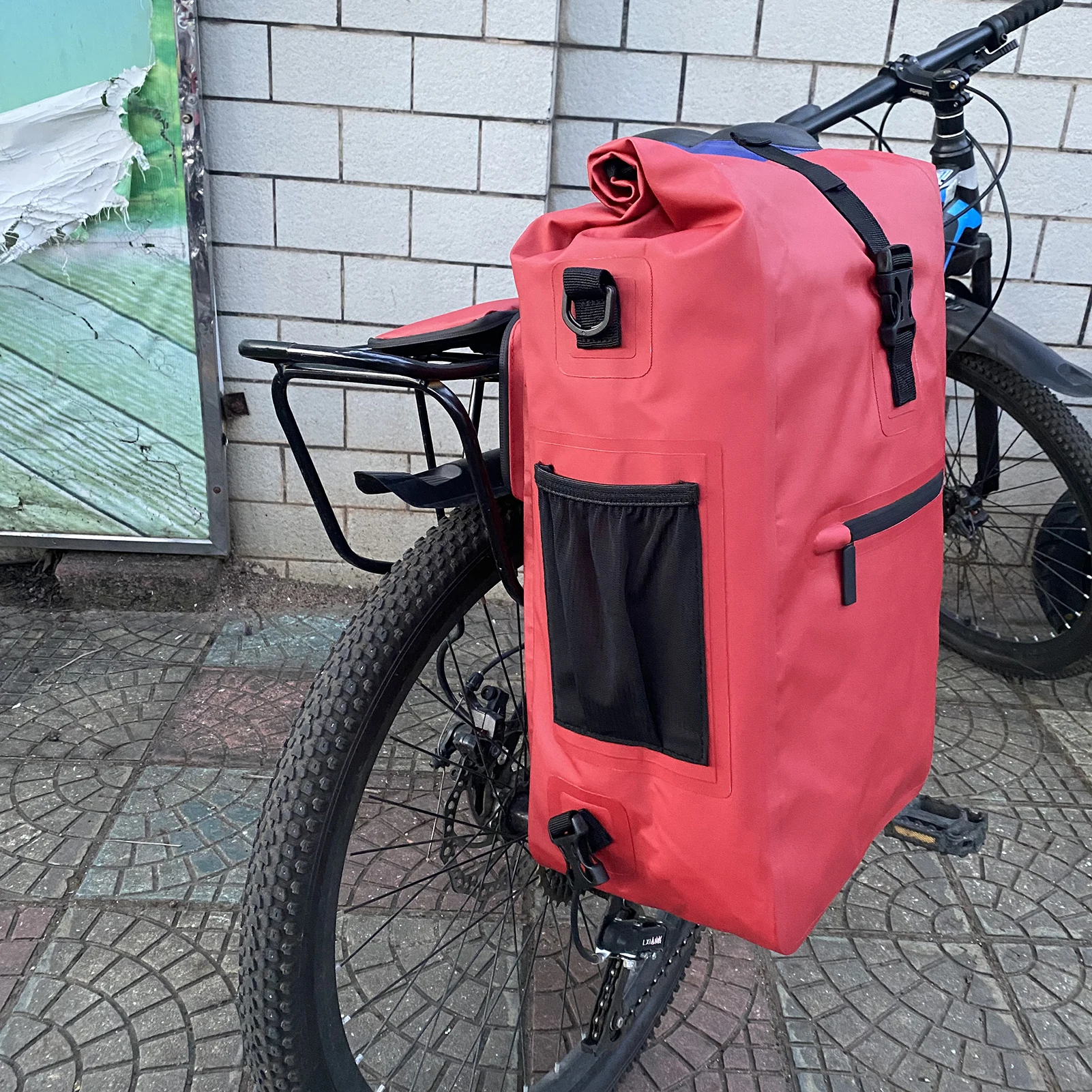 Esta bolsa es impermeable y se puede utilizar como bolsa para portabicicletas, mochila y bolso de hombro.Cuenta con una gran capacidad que puede satisfacer sus necesidades diarias, ideal para andar en bicicleta, desplazarse, hacer caminatas, viajar y otras actividades al aire libre.
