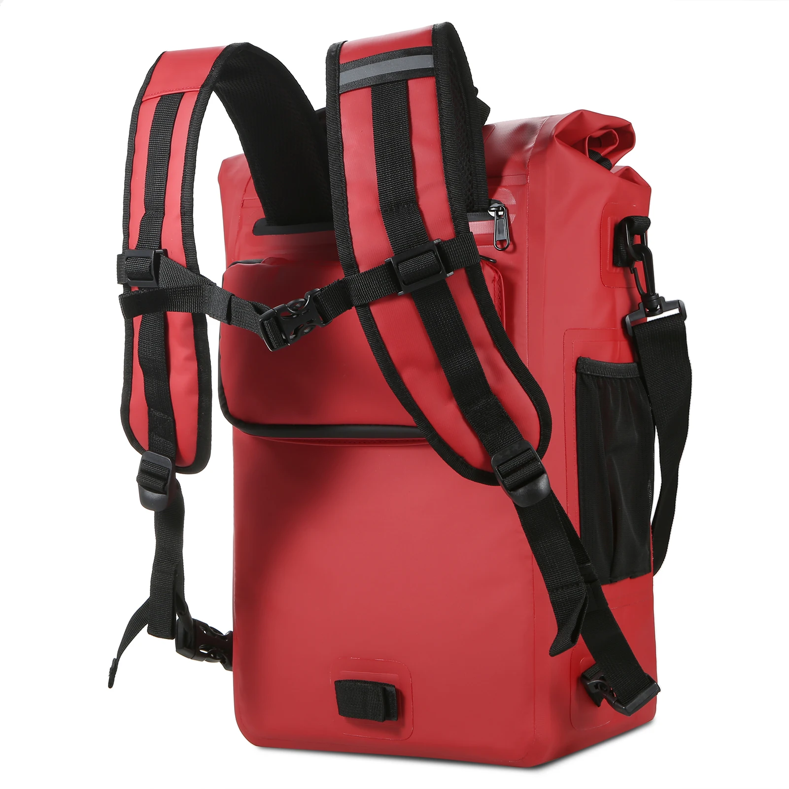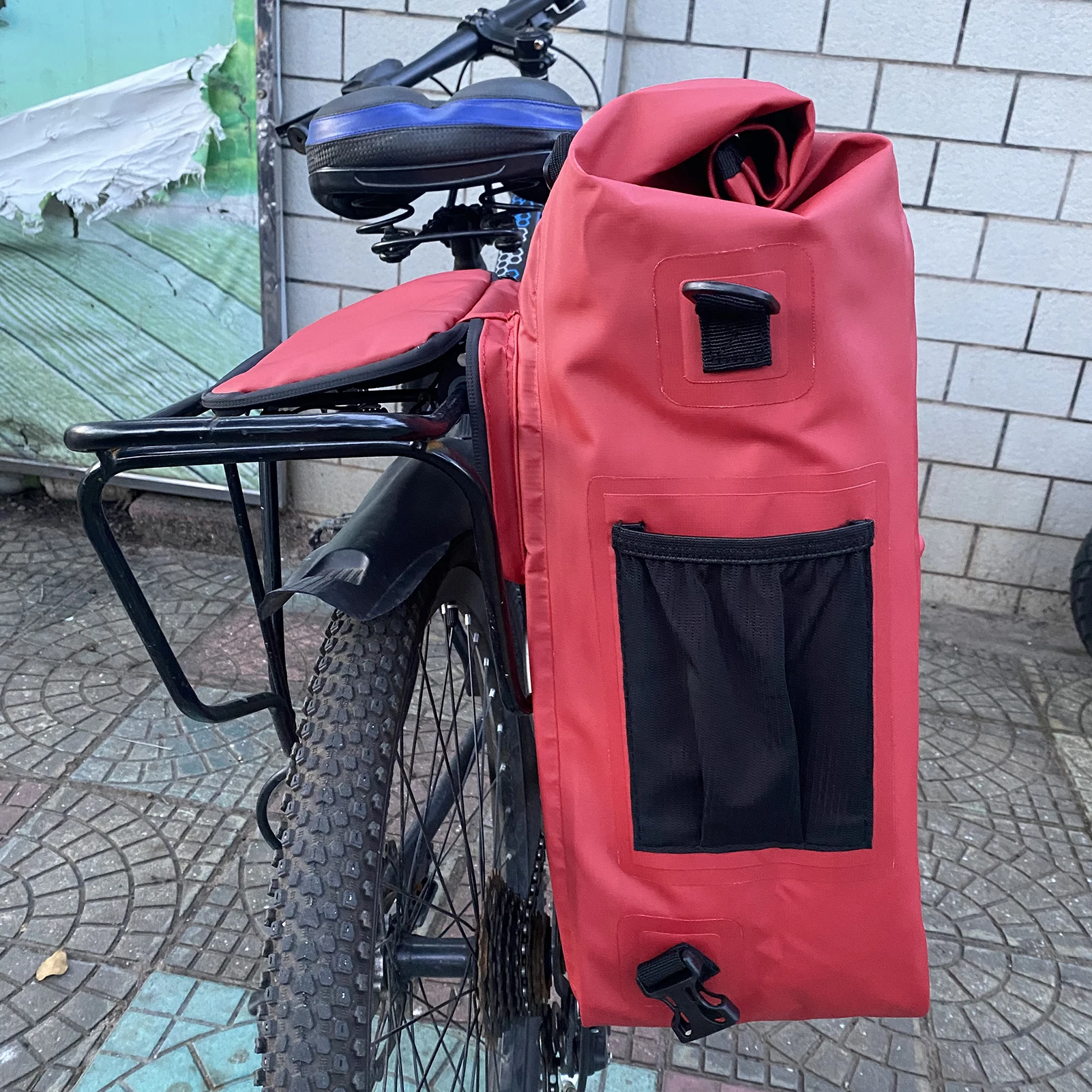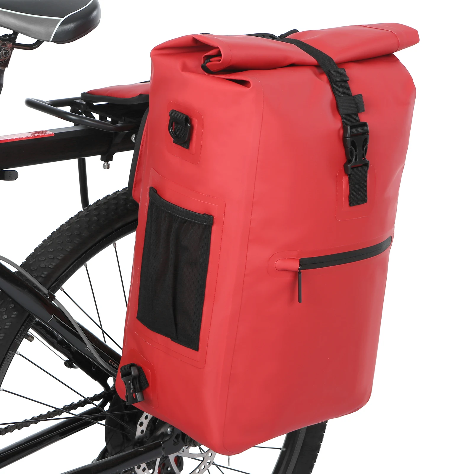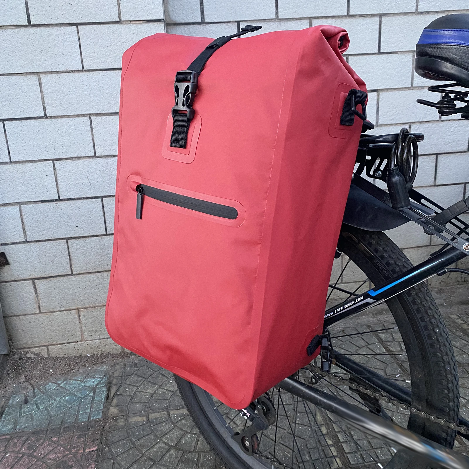 Esta bolsa es impermeable y se puede utilizar como bolsa para portabicicletas, mochila y bolso de hombro.Cuenta con una gran capacidad que puede satisfacer sus necesidades diarias, ideal para andar en bicicleta, desplazarse, hacer caminatas, viajar y otras actividades al aire libre.