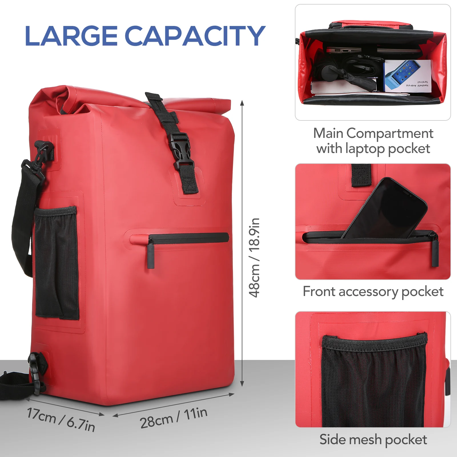 Resistente al agua: el material de PVC de alta calidad y las costuras soldadas evitan que el agua se filtre en la bolsa, y el cierre enrollable garantiza una mejor conservación para mantener sus pertenencias secas.