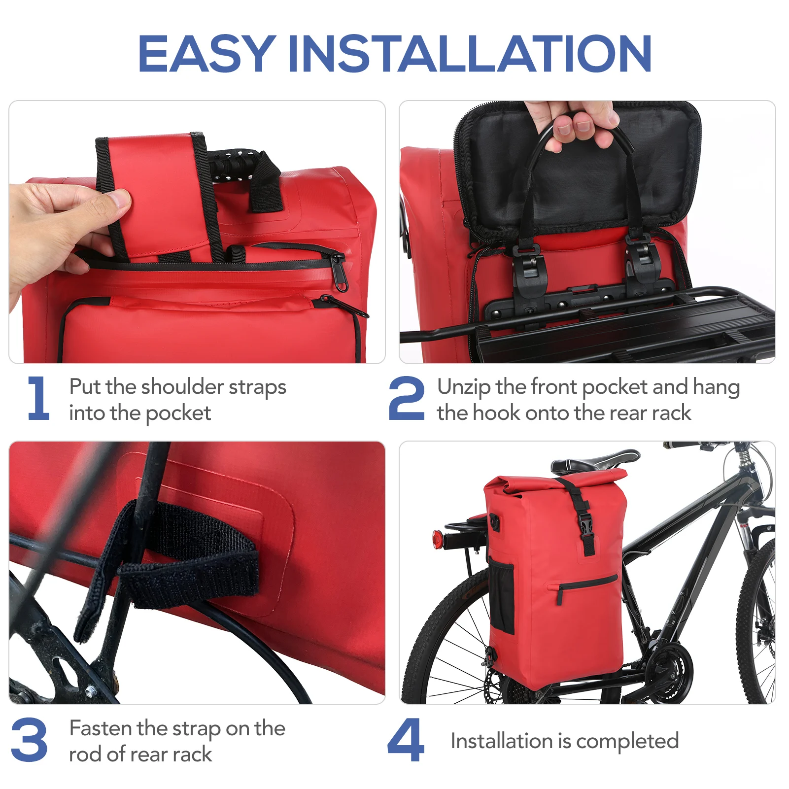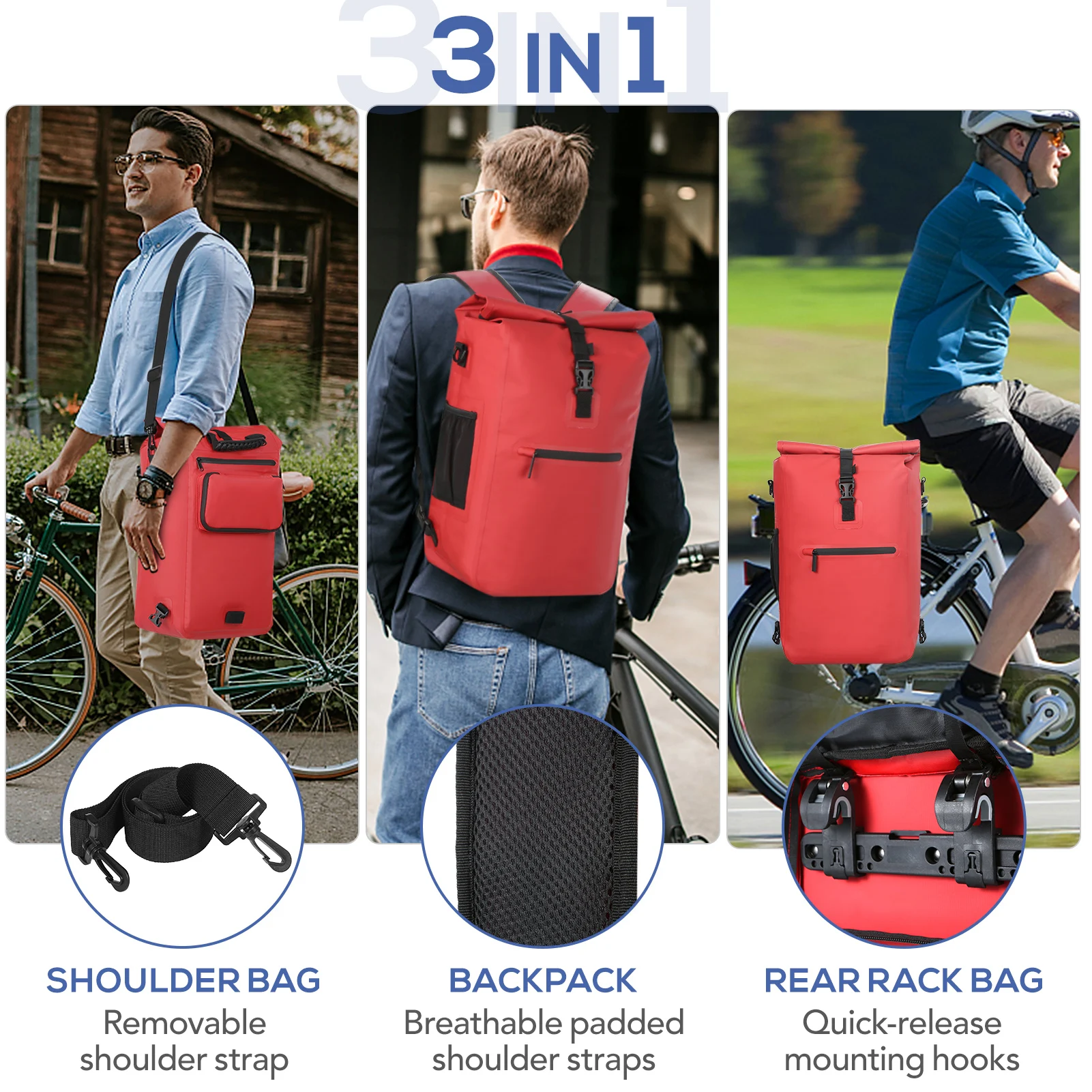 Diseño 3 en 1: esta bolsa se puede usar como bolsa para portabicicletas, mochila y bolso de hombro, ideal para andar en bicicleta, desplazarse, hacer caminatas, viajar y otras actividades al aire libre.