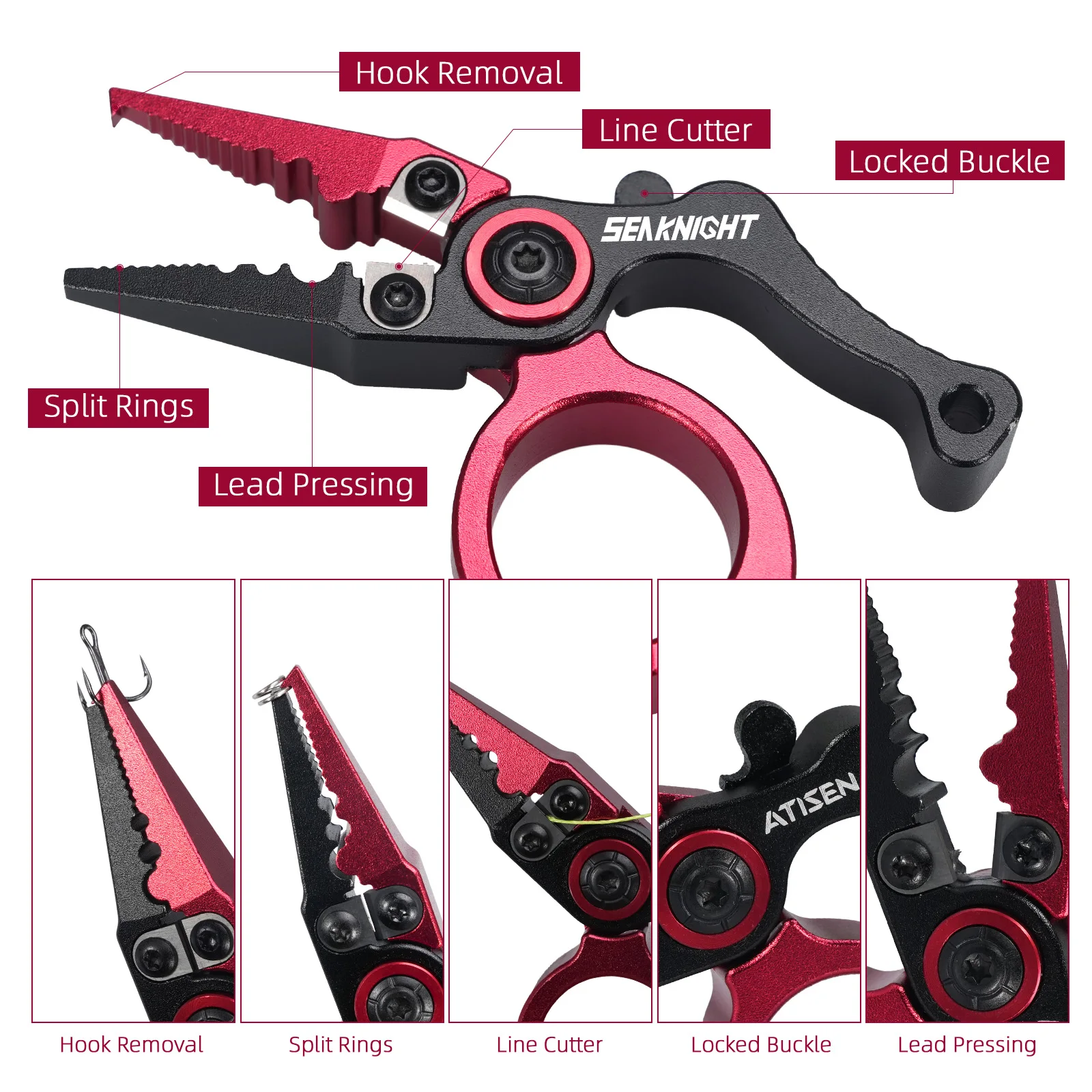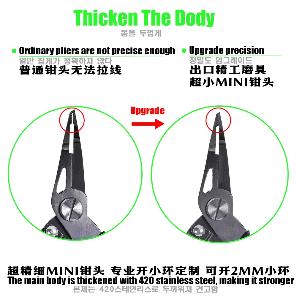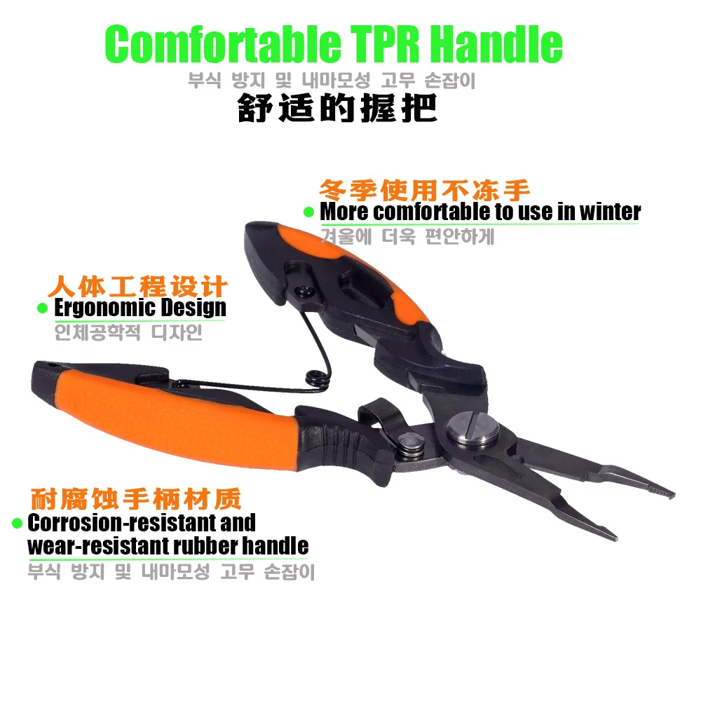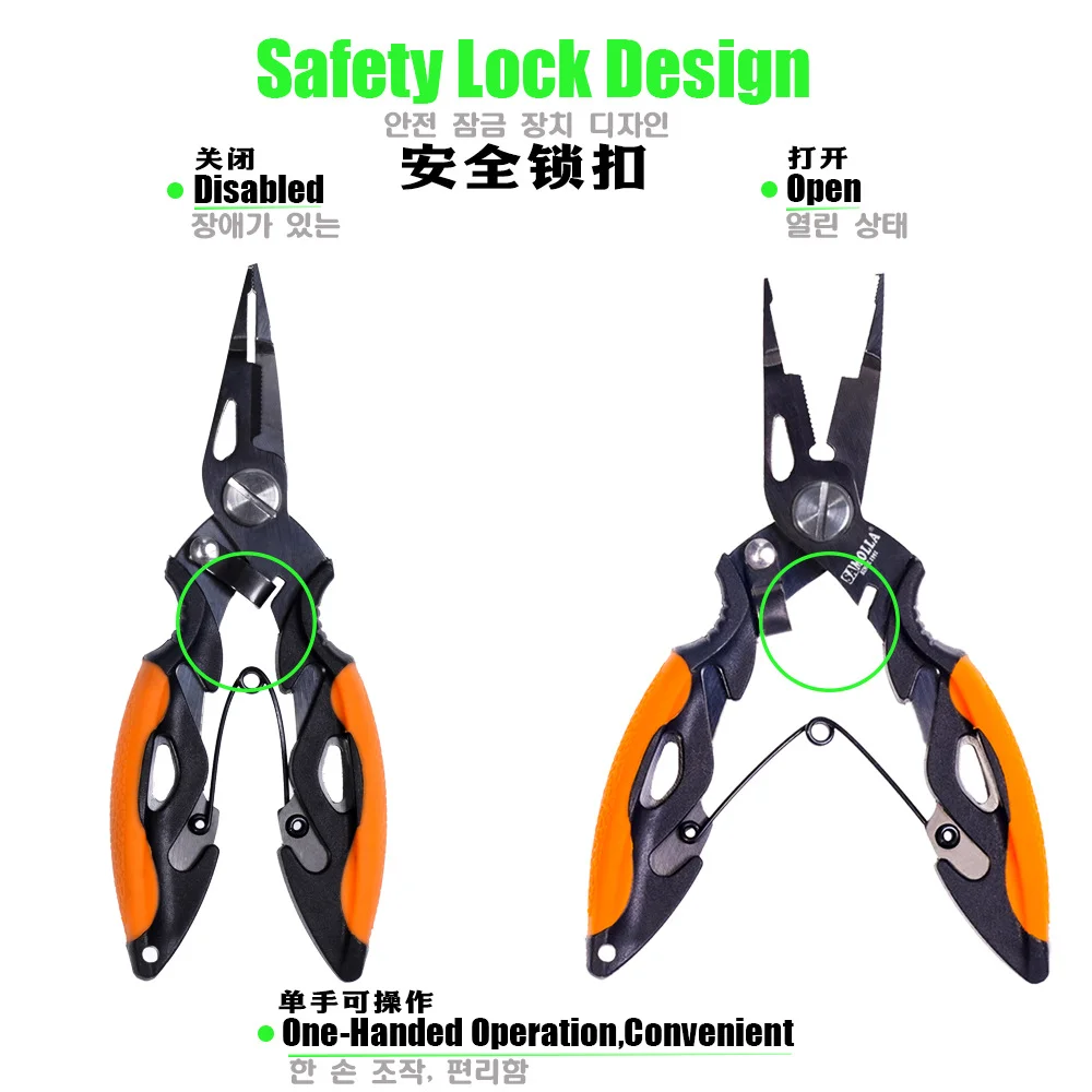 02: El diseño de tamaño ampliado puede quitar los anzuelos de la boca del pez para proteger sus manos de los dientes de pez y son muy afilados, por lo que pueden cortar todo el hilo de pescar con mucha facilidad.