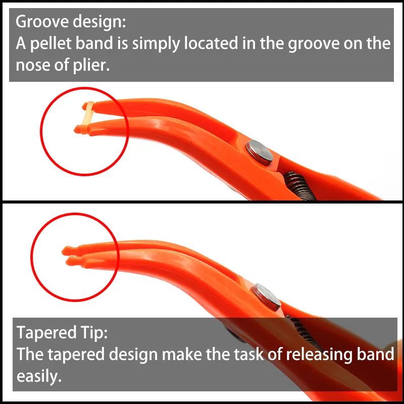 1. Diseño de ranura: una banda de pellet simplemente se encuentra en la ranura en la nariz del alicate.