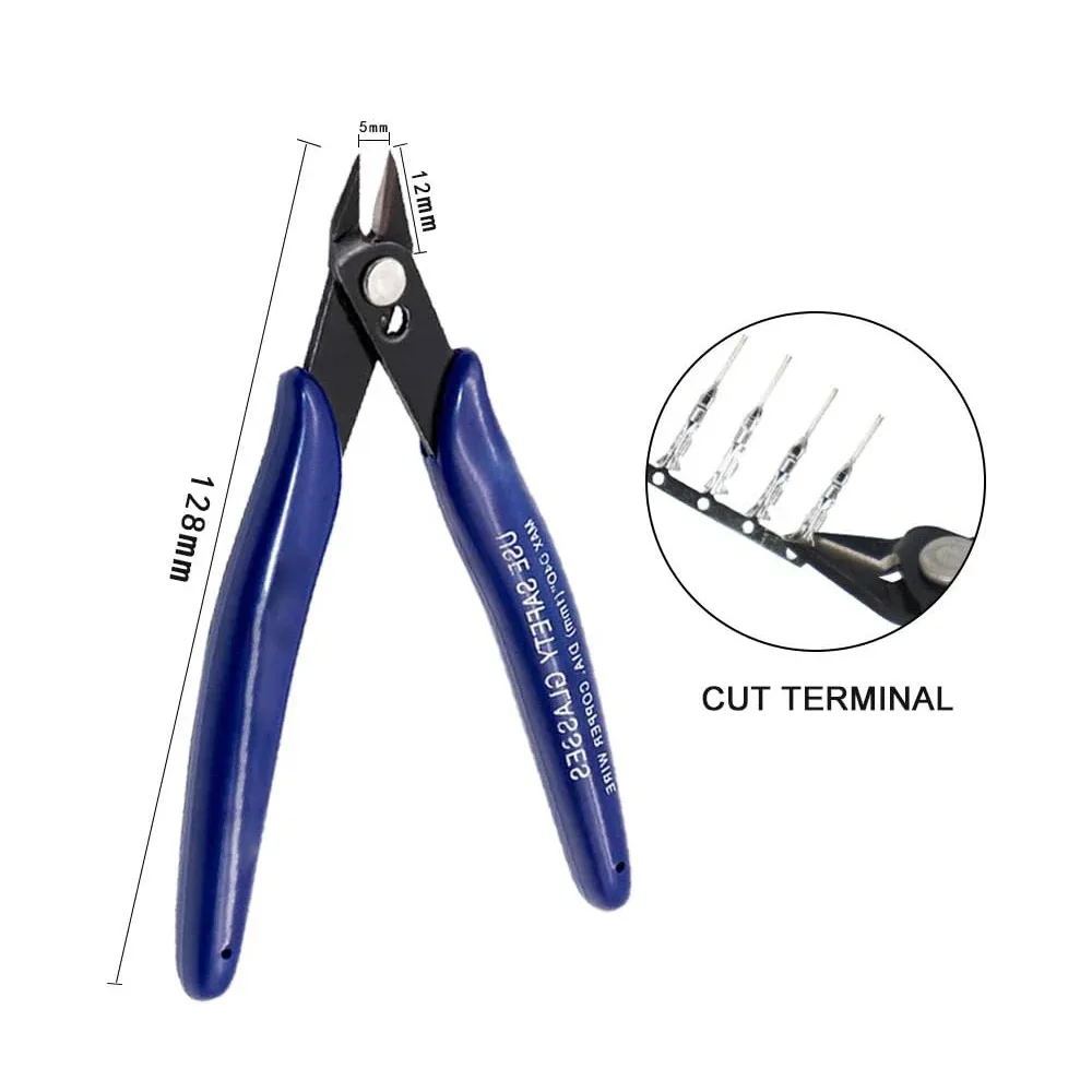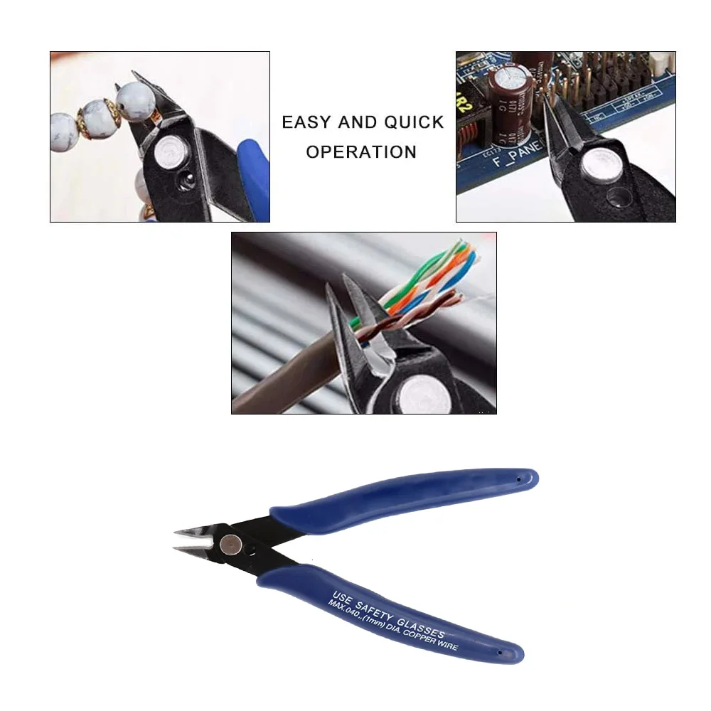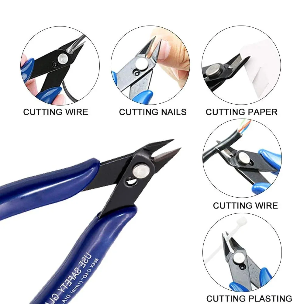 • Alicates de Corte Lateral diagonal electrónicos de bricolaje :Con la capacidad de cortar en diagonal y hacia los lados, Estos alicates son perfectos para cortar alambres y cables con precisión.