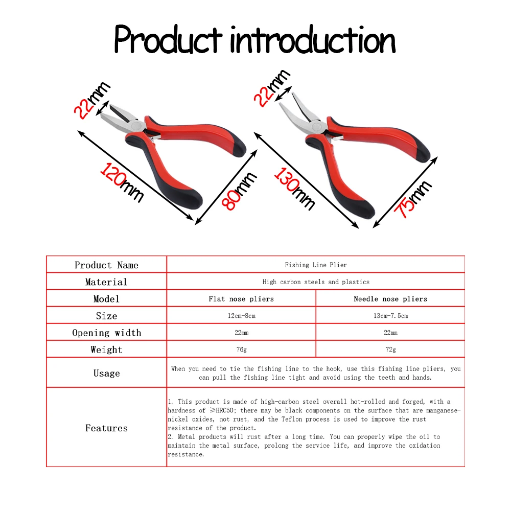 Especificaciones: Alicates de punta plana, 12cm-8cm, 76g;