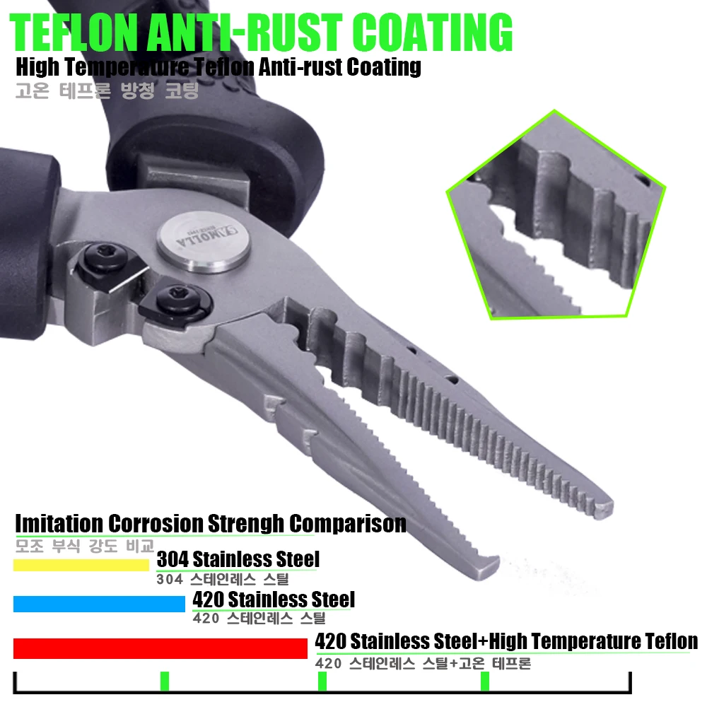1. Equipo de pesca de acero inoxidable resistente a la corrosión-Hecho de acero inoxidable 420 resistente a la corrosión y recubierto con un resistente recubrimiento de teflón para mayor protección.