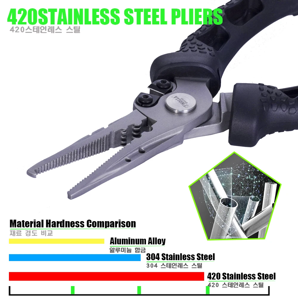 Alicates de pesca accesorios 420 cortador de línea de cuerpo de acero inoxidable multifunción nudo tijeras removedor de anzuelos equipo de anillo dividido