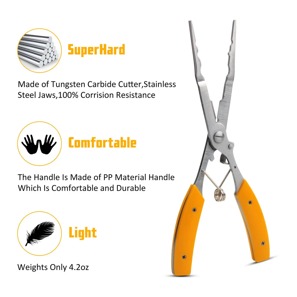 Material: Alicates de pesca de acero inoxidable y tubo de aluminio Características: Protección contra la corrosión tanto en agua dulce como salada Se utiliza como removedor de gancho, cortador de línea de trenza, pinza de pescado, herramientas de manga de prensado Combinación perfecta para la pesca al aire libre. Nota: La medición puede tener algunos errores, por favor no se preocupe.