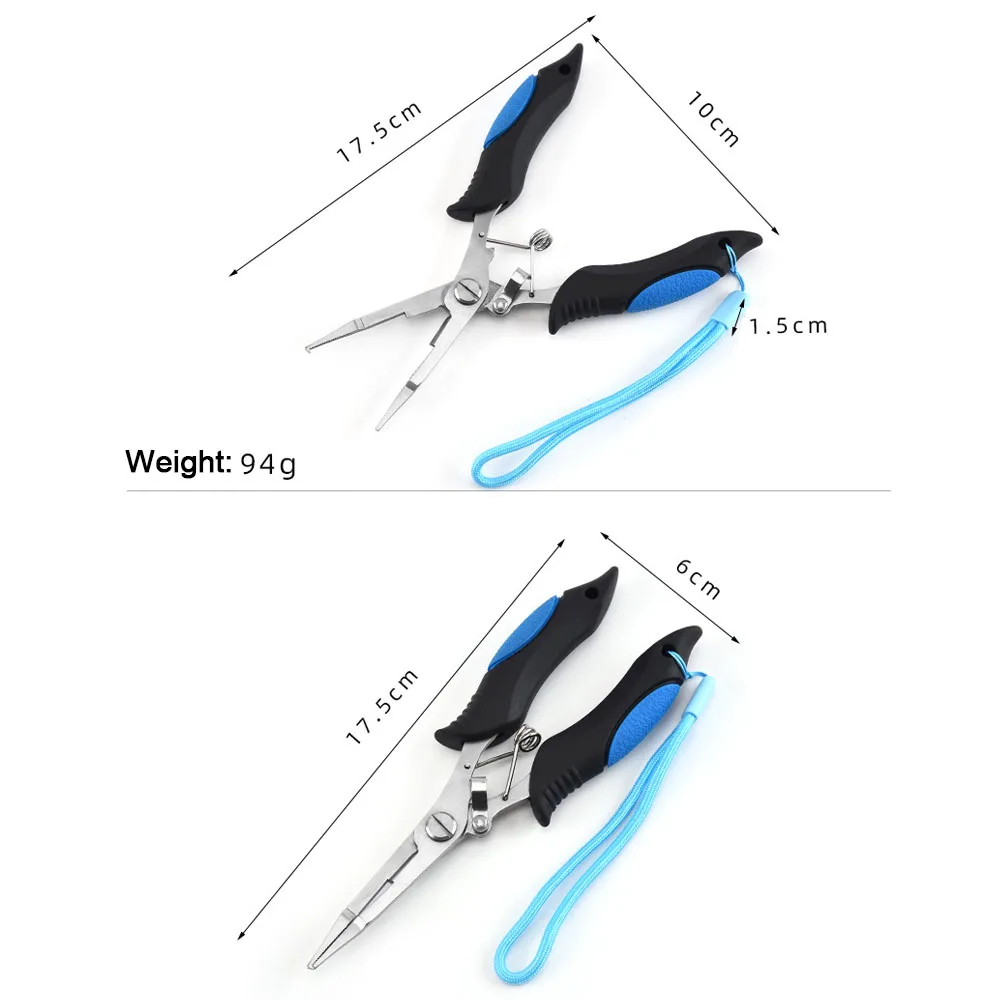 Alicates de pesca de acero inoxidable, nuevo cortador de línea trenzada multifuncional, tijeras, removedor de anzuelos, alicates de bucle abierto, juego de herramientas de pesca