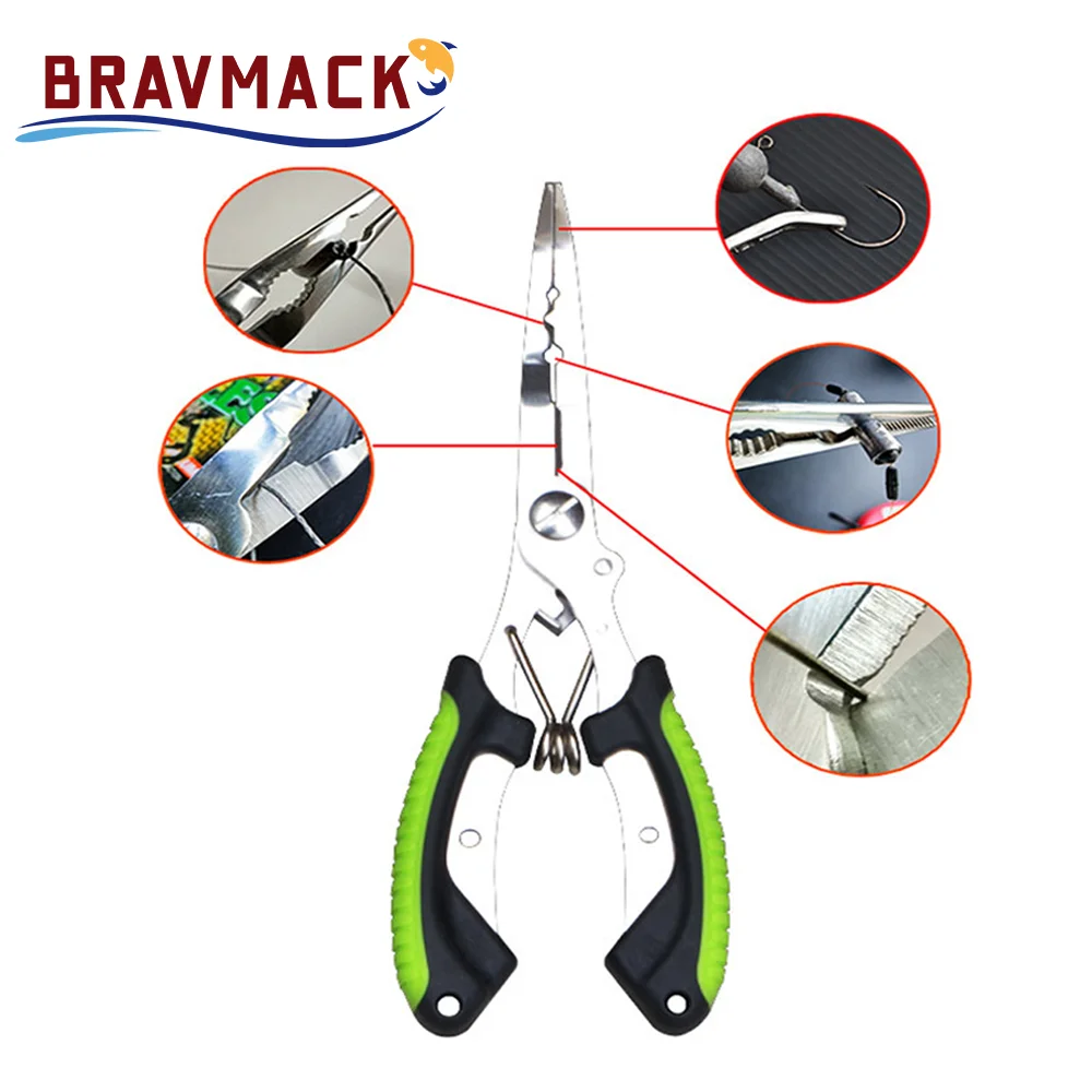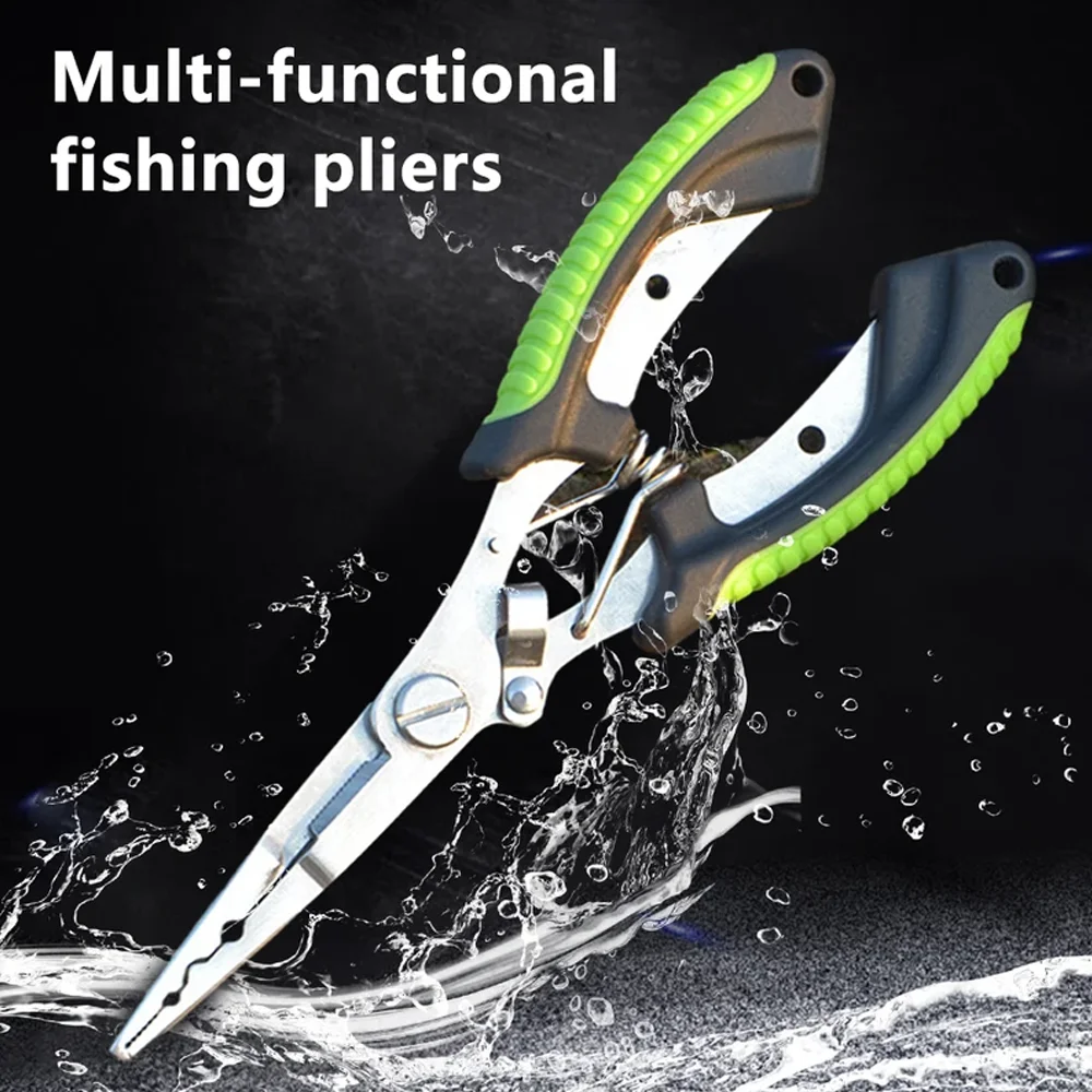 Alicates de pesca de acero inoxidable, removedor de anzuelos de pesca, resistente al agua salada, cortador de línea trenzada, tijeras, herramienta de pesca