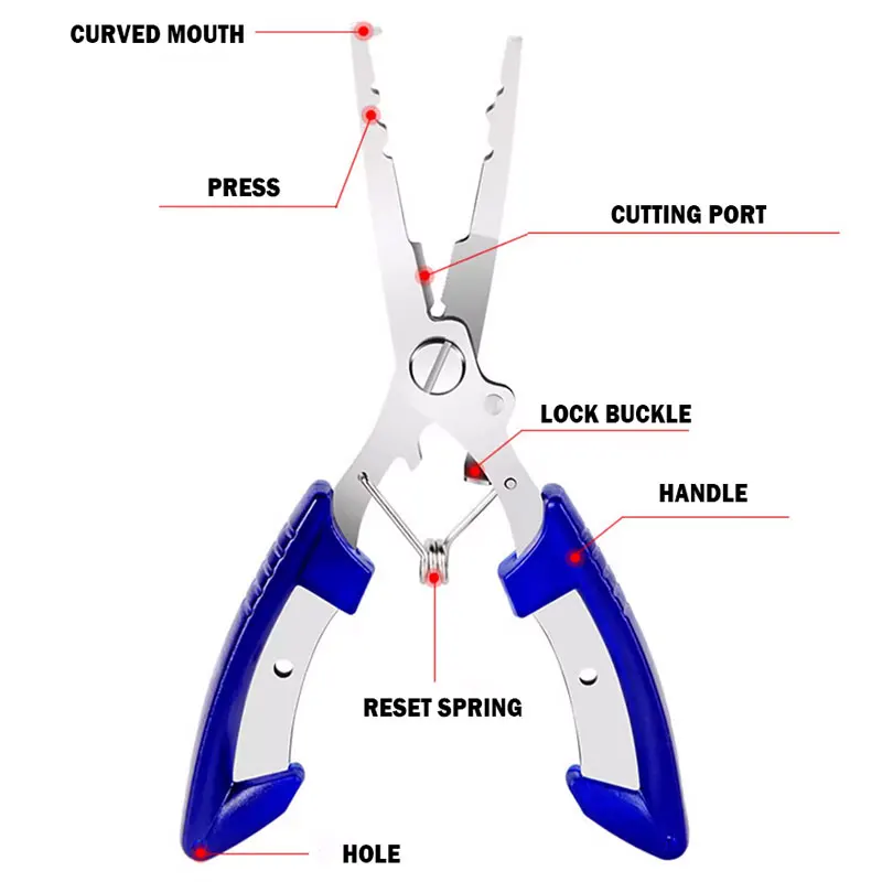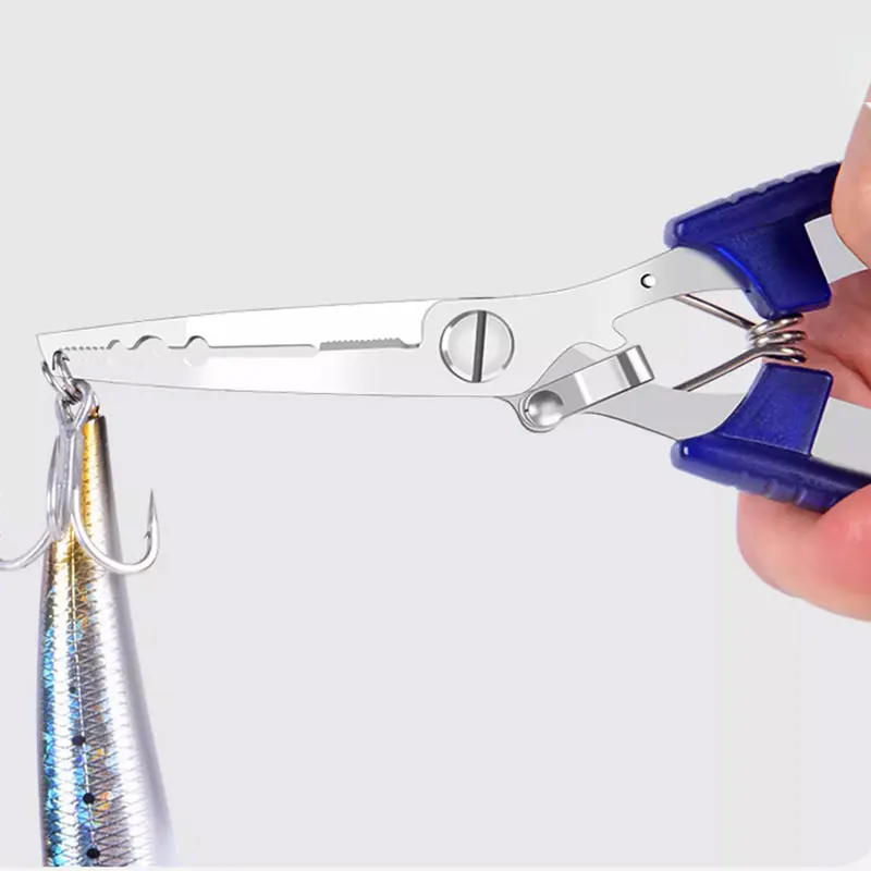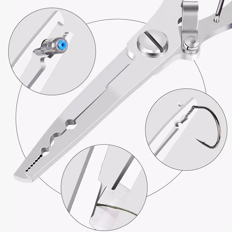 Alicates de pesca de acero inoxidable, tijeras de aleación de aluminio, removedor de anzuelos, cortador de línea, nudo multifuncional, equipo de pesca, 82g, 20cm