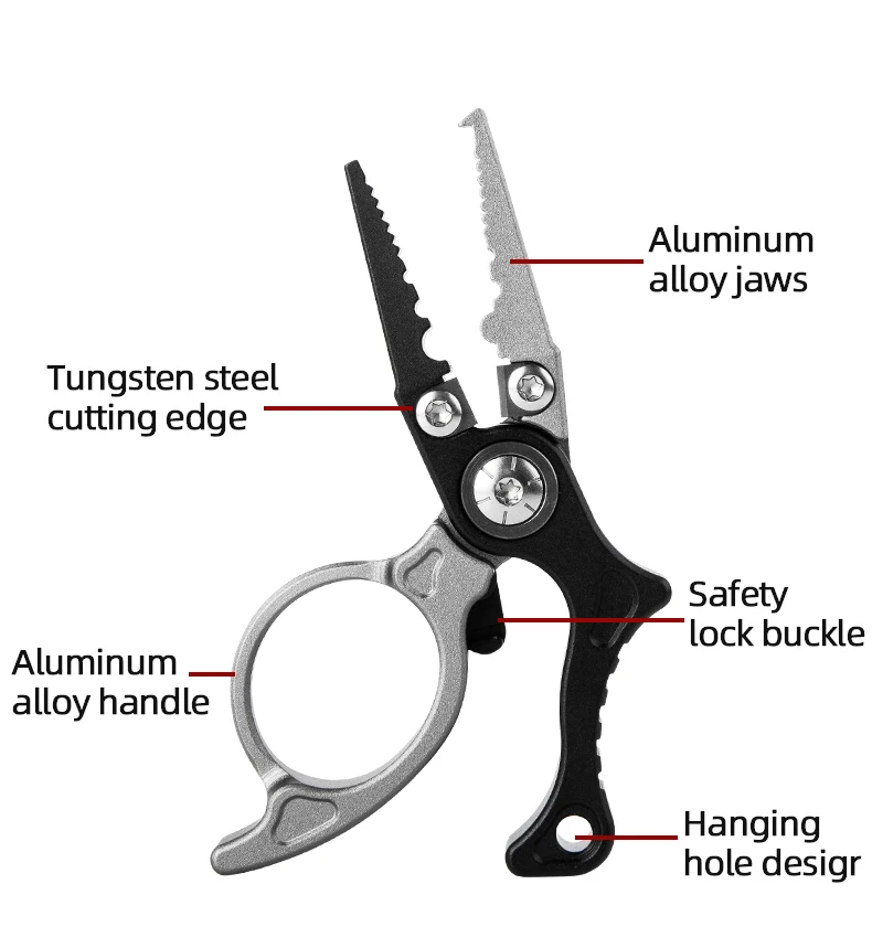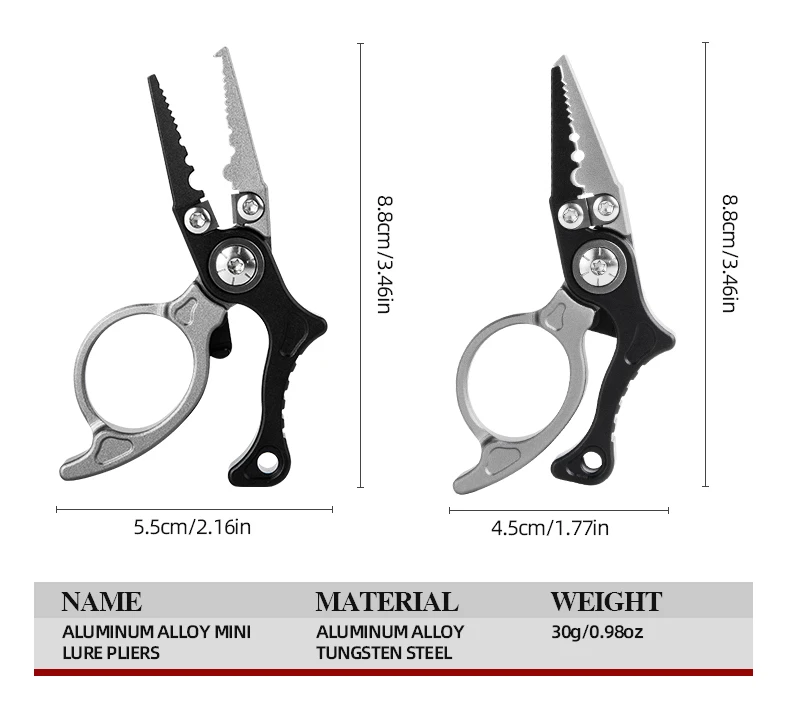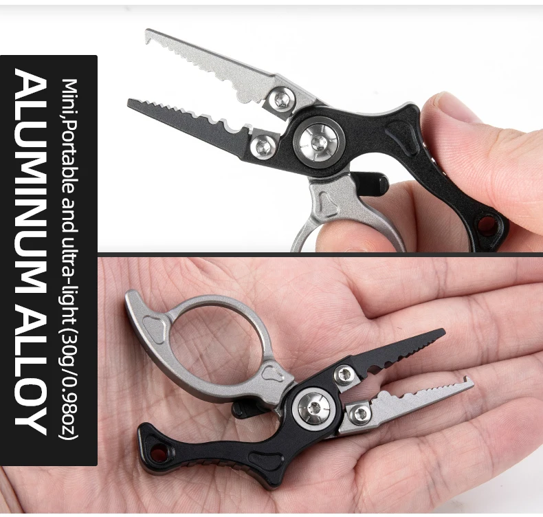 Alicates de pesca de aleación de aluminio, Mini alicates para señuelos, anzuelo y herramienta removedora de sedal de pesca trenzada, alicates de anillo dividido, multiherramienta de pesca