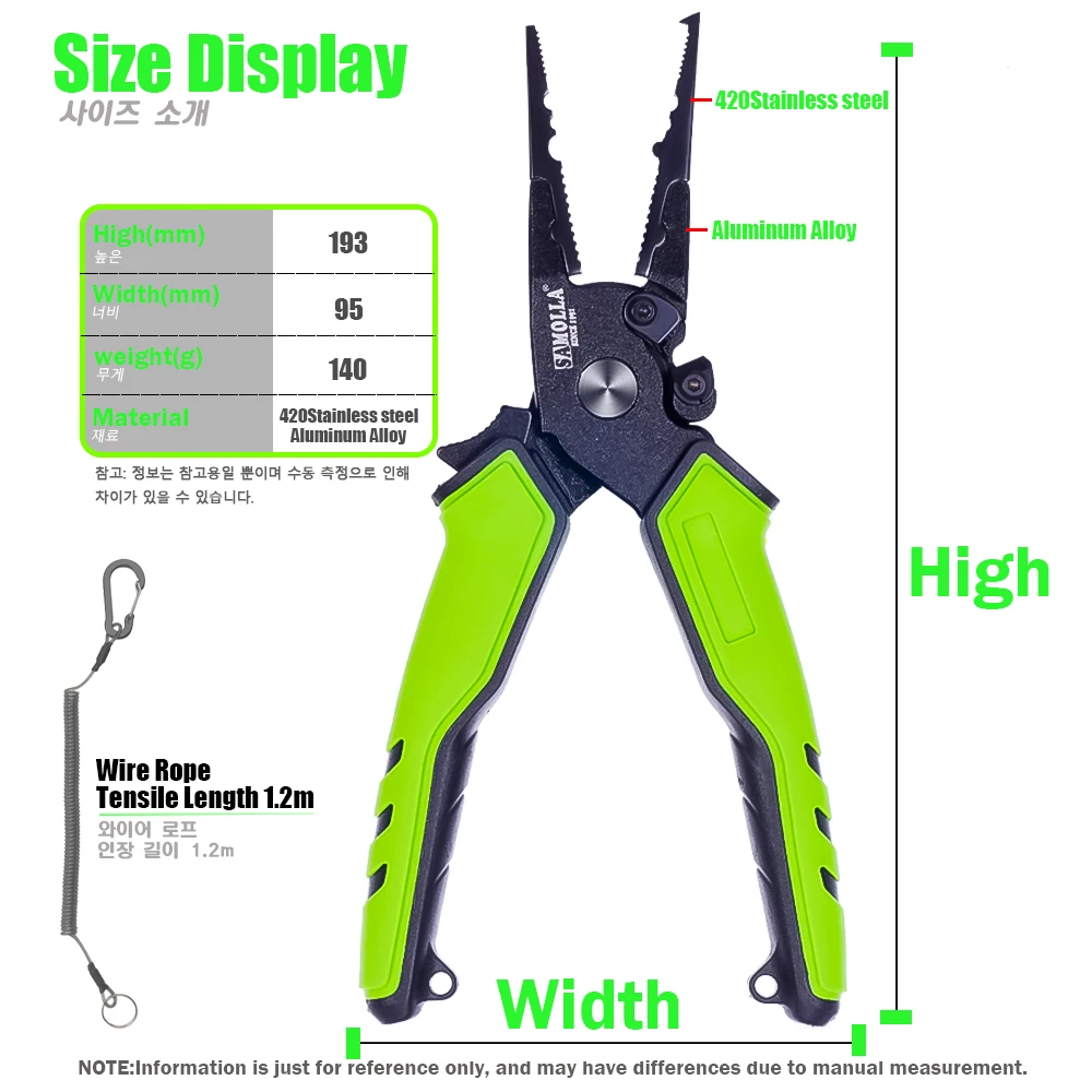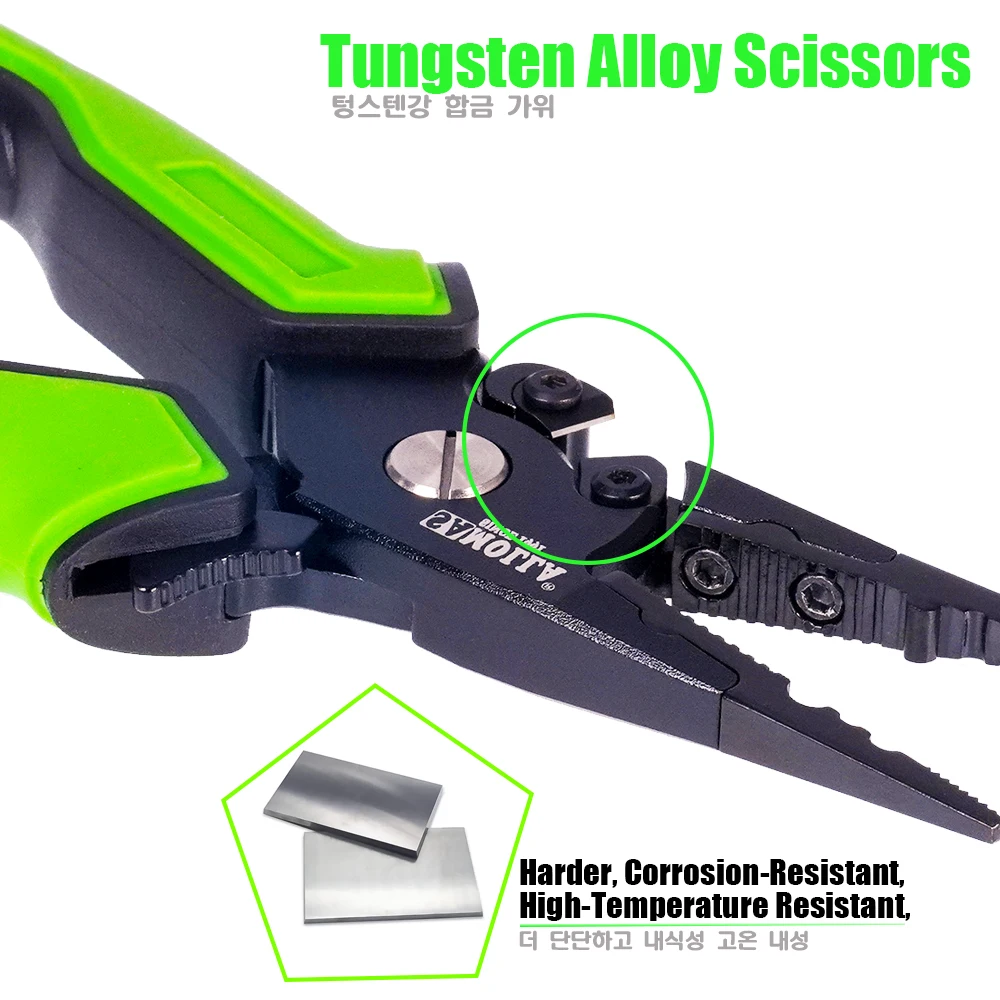 Alicates de pesca, agarre de aleación de aluminio y accesorios de cuerpo de acero inoxidable 420, tijeras multifuncionales, cortador de línea, removedor de anzuelos, herramientas de pesca al aire libre