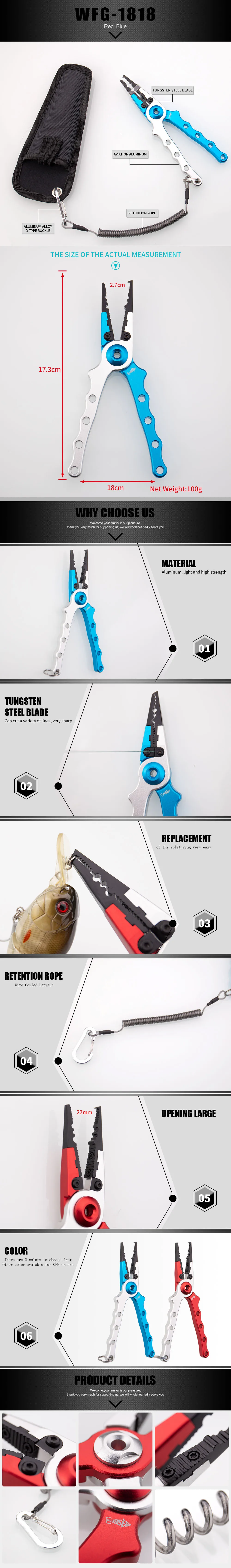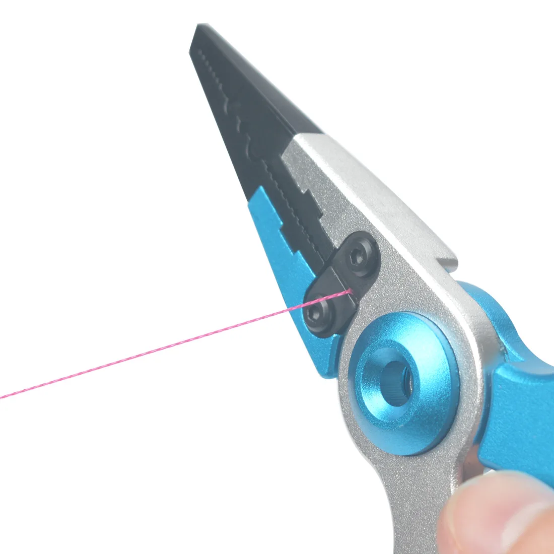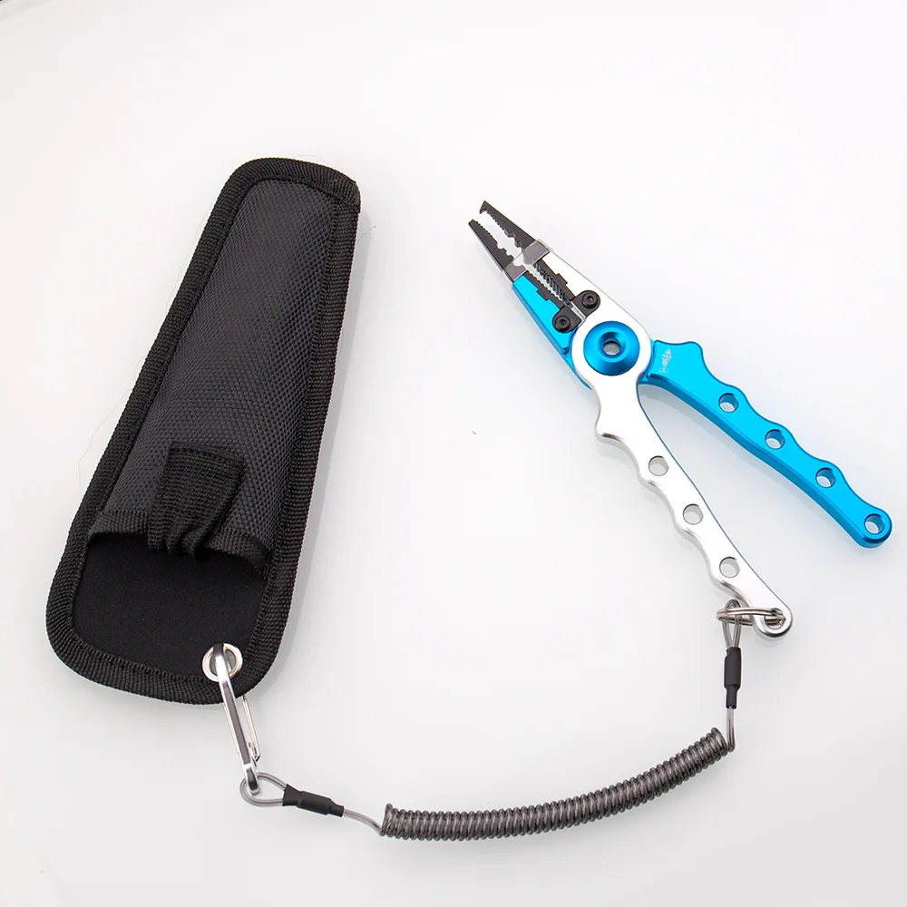 Alicates de pesca de aluminio, cortadores de trenzas, alicates de anillo dividido, agua salada, removedor de anzuelos de agua dulce, soporte para peces con funda Lan
