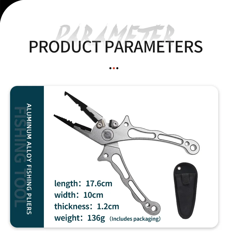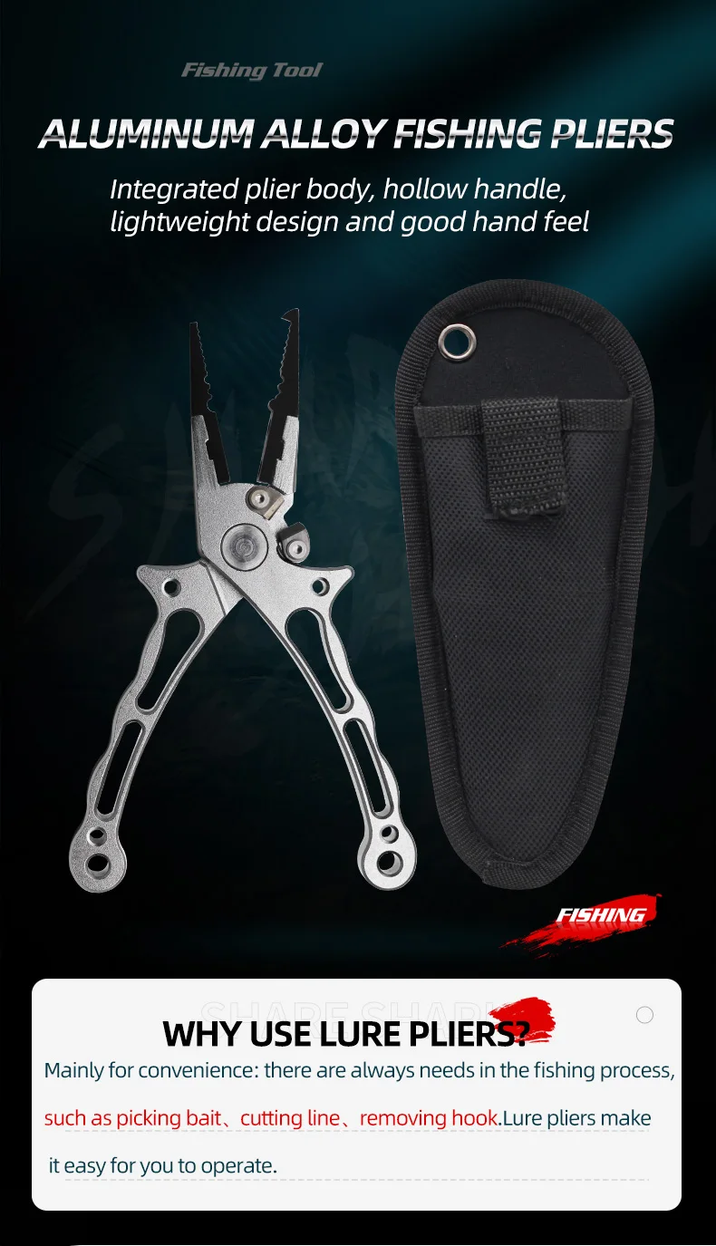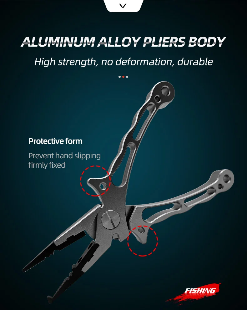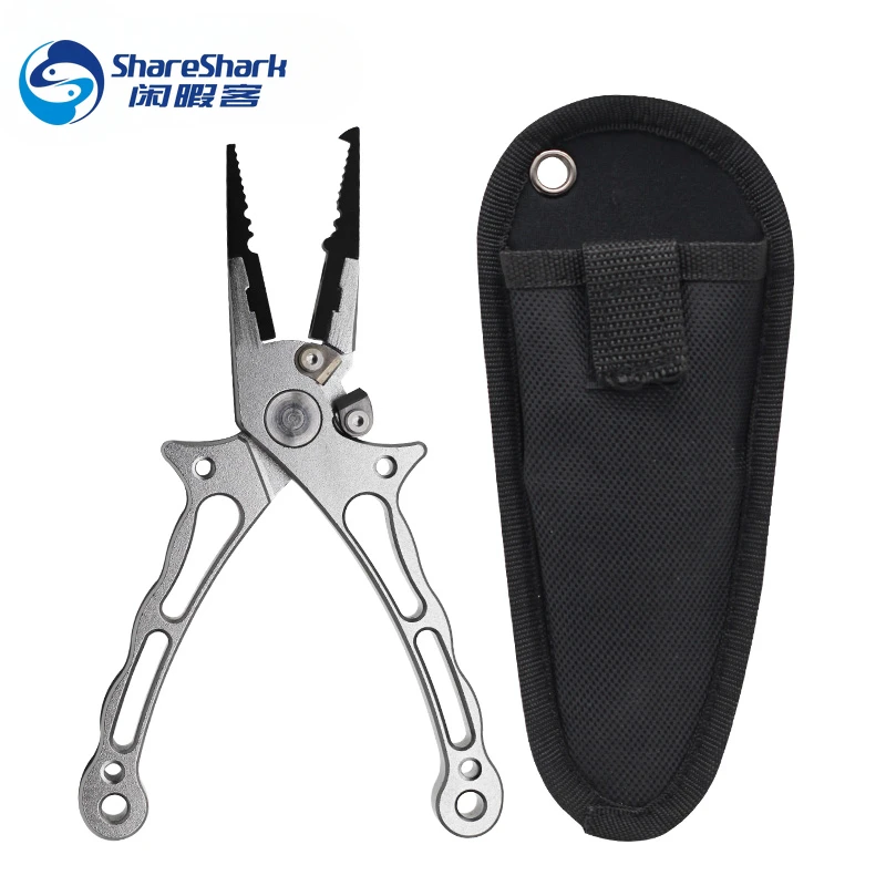 Alicates de pesca de aluminio para agua salada, multiherramienta, alicates de anillo dividido, removedor de anzuelos de pesca, cortadores de línea trenzada, alicates de pesca con funda