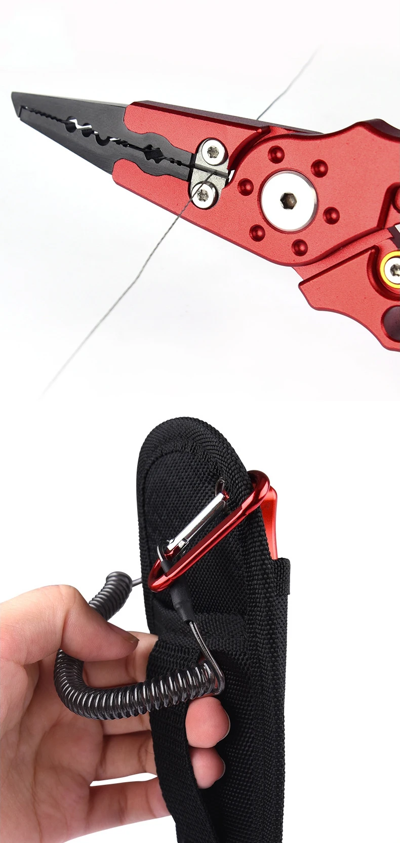 Alicates de pesca de anillo dividido, tijera de línea trenzada, cortador de señuelos, removedor de anzuelos, etc. Herramienta de aparejos de corte de pescado