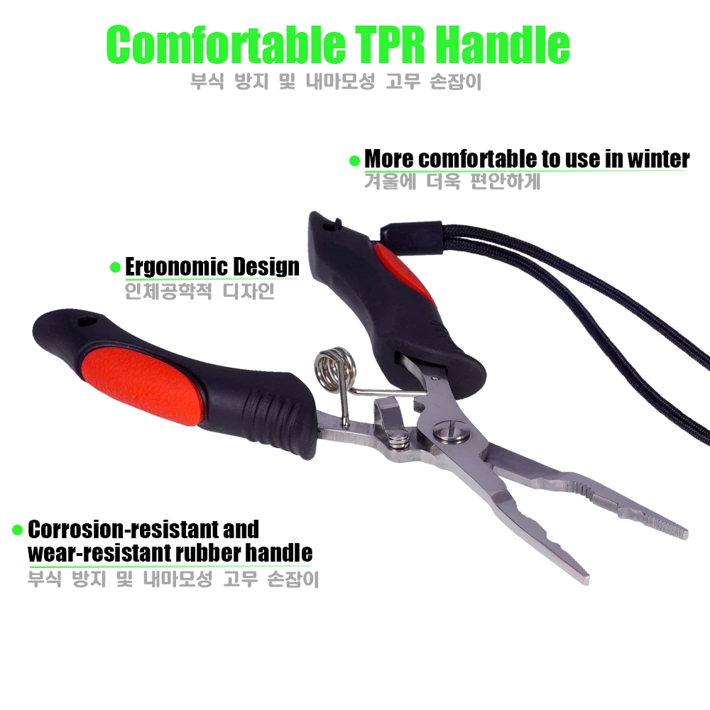 Alicates de pesca accesorios 420 cuerpo de acero inoxidable cortador de línea multifunción nudo tijeras removedor de gancho equipo de anillo dividido