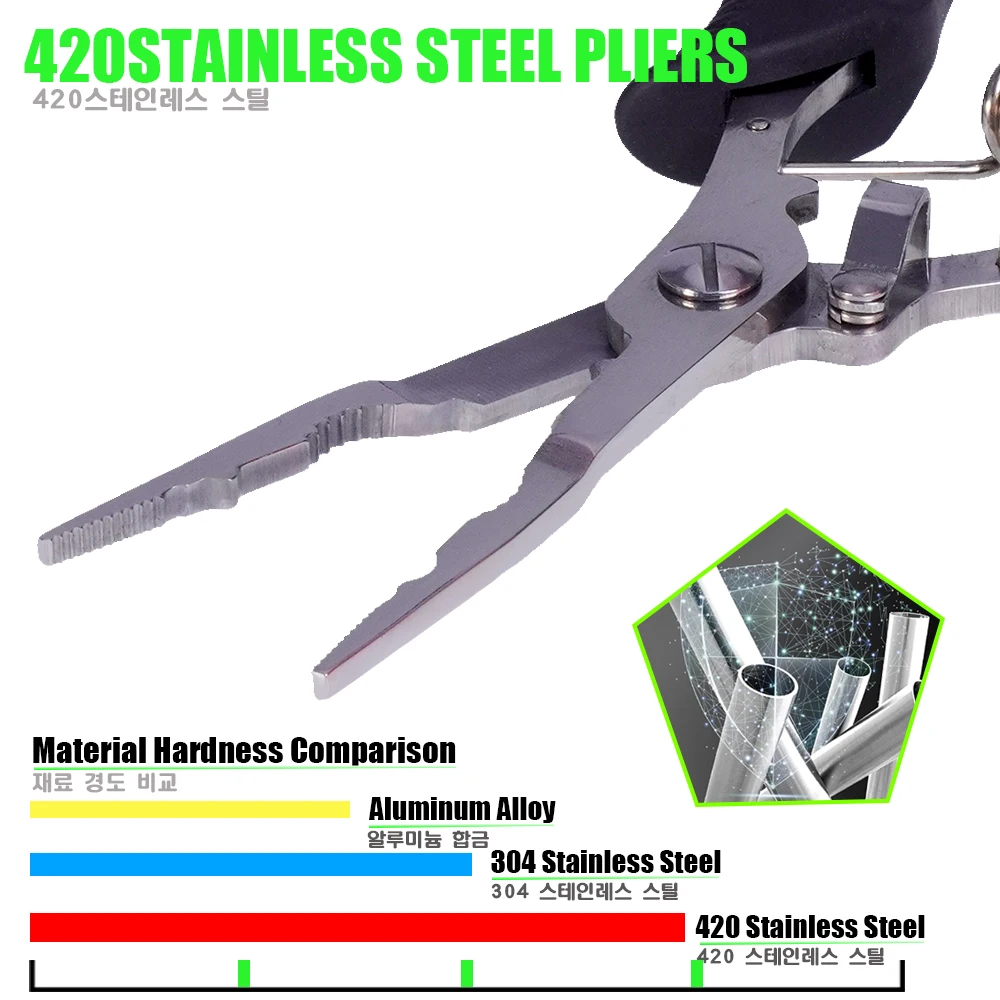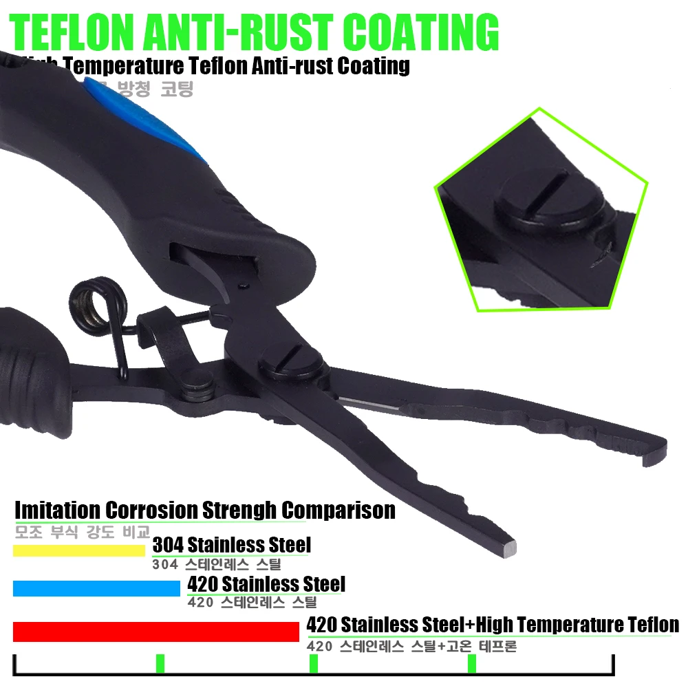 1. Equipo de pesca de acero inoxidable resistente a la corrosión-Hecho de acero inoxidable 420 resistente a la corrosión y recubierto con un revestimiento de teflón resistente para mayor protección.