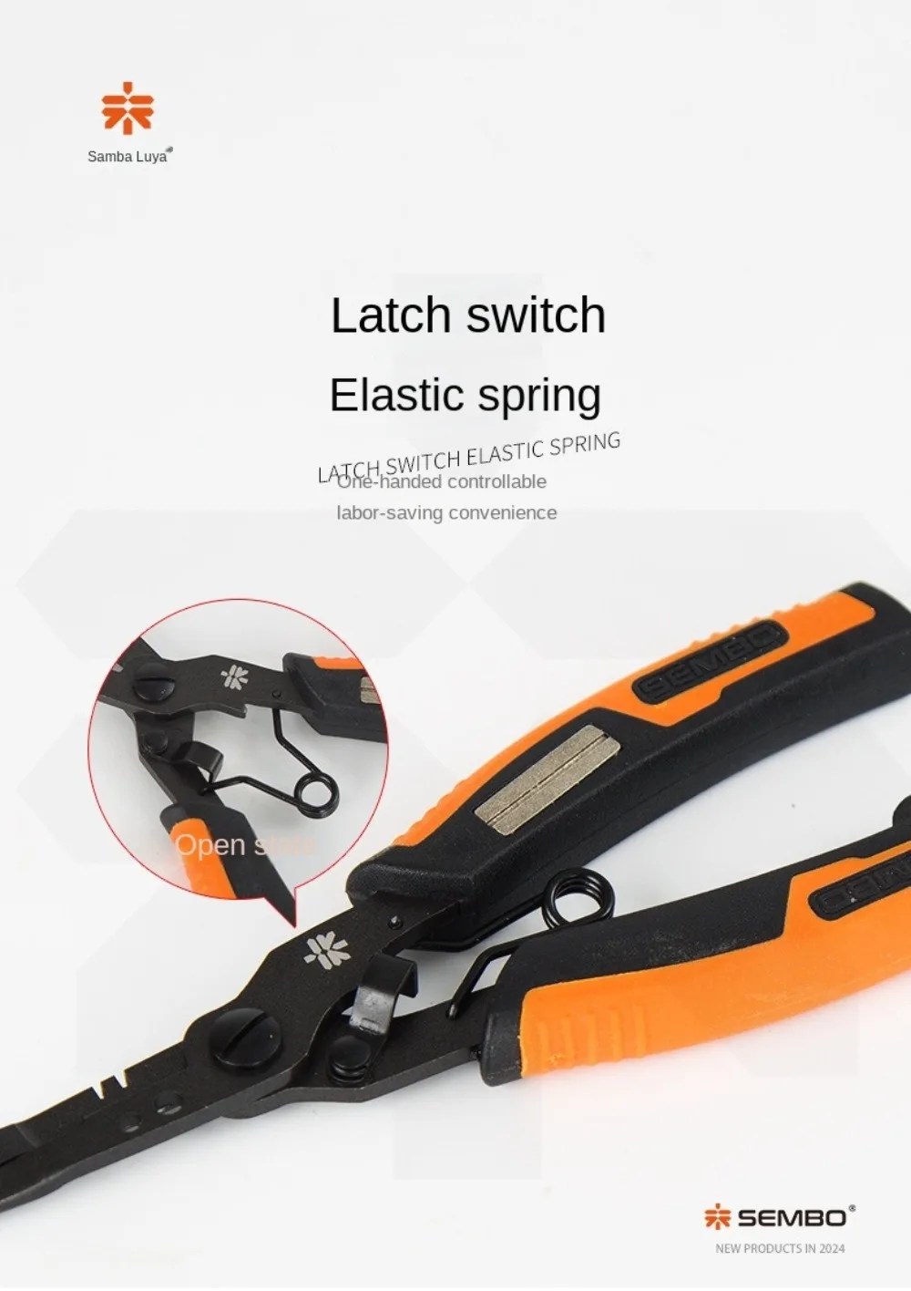 4.Material: mandíbulas multifuncionales de acero inoxidable 2CR13: mandíbulas dentadas para extracción de anzuelos y ranuras de engarzado para peso de tiro dividido o construcción líder, mejorando la versatilidad de su pesca.
