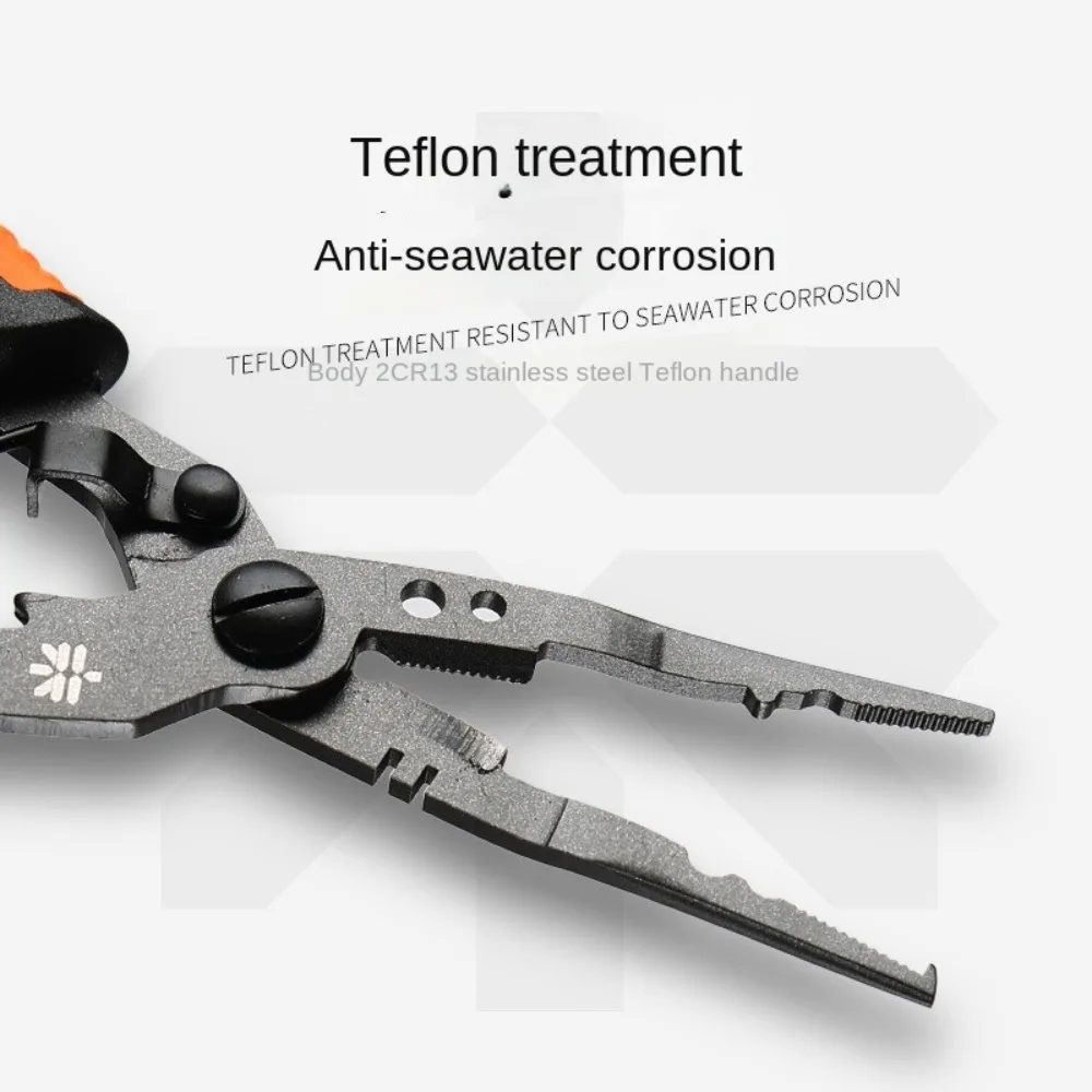 Fishing Pliers| Pliers|2CR13 Stainless Steel:Crafted from 2CR13 stainless steel, these pliers offer 46% more strength than aluminum, ensuring durability in fresh or saltwater.