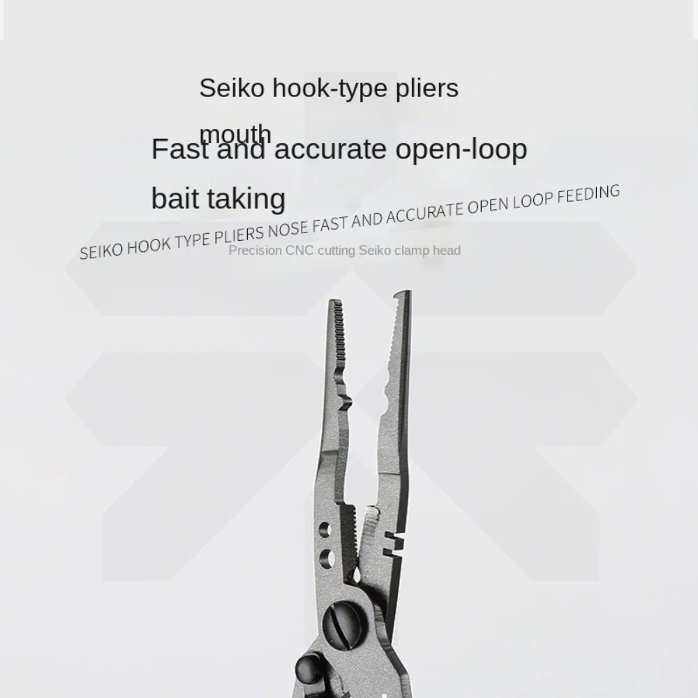 4. Material:2CR13 Stainless Steel Multifunctional Jaws:Serrated jaws for hook removal and crimping slots for split shot weight or leader building, enhancing your fishing versatility.