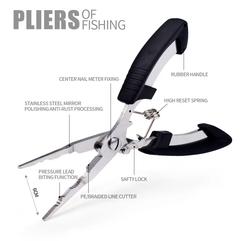 Alicates de pesca multifunción de acero inoxidable, tijera, línea trenzada, señuelo, removedor de anzuelos, herramienta de aparejos de pesca, pinzas para cortar pescado, tijeras