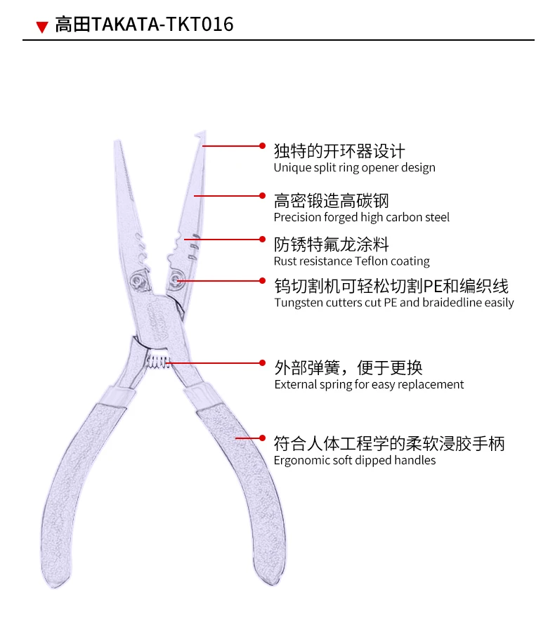 Alicates de pesca modelo TKT016, fácil de usar, herramientas de pesca multifunción. Puede cortar el sedal y quitar los anzuelos de pesca.