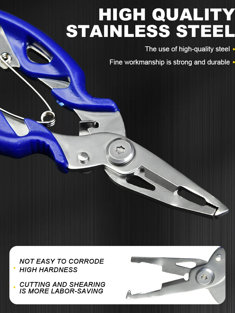 • Multifuncionalidad :Estos alicates de pesca son multifuncionales, pueden ser utilizados como alicates, tijeras de marca, alicate de pesca y más, lo que las hace indispensables para cualquier pescador.