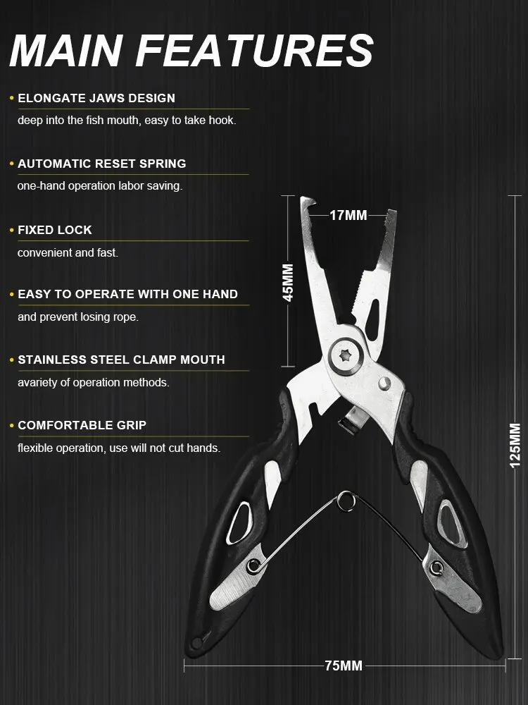 • Alicates de aparejos de invierno :Perfecto para la pesca en clima frío, Estos alicates están hechos para soportar las condiciones más duras y mantener su aparejos en la mejor forma.