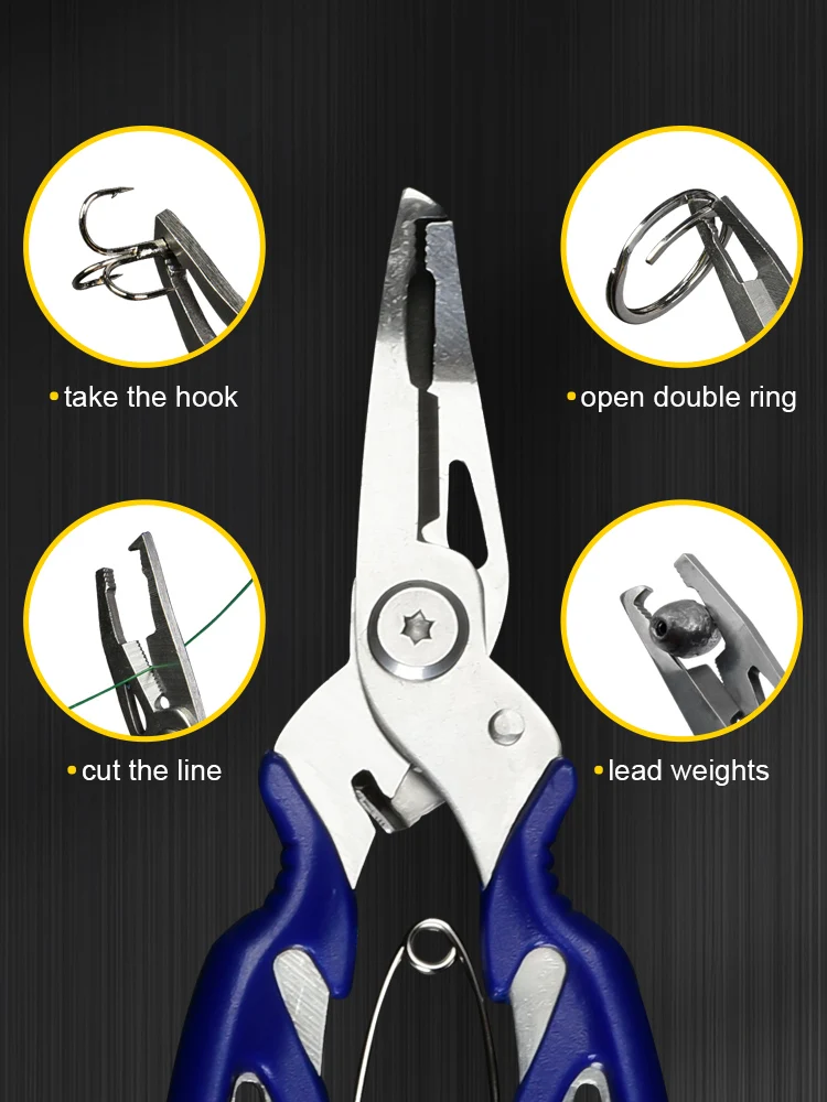 • Multifuncionalidad :Estos alicates de pesca son multifuncionales, pueden ser utilizados como alicates, tijeras de marca, alicate de pesca y más, lo que las hace indispensables para cualquier pescador.