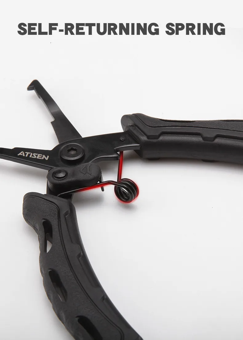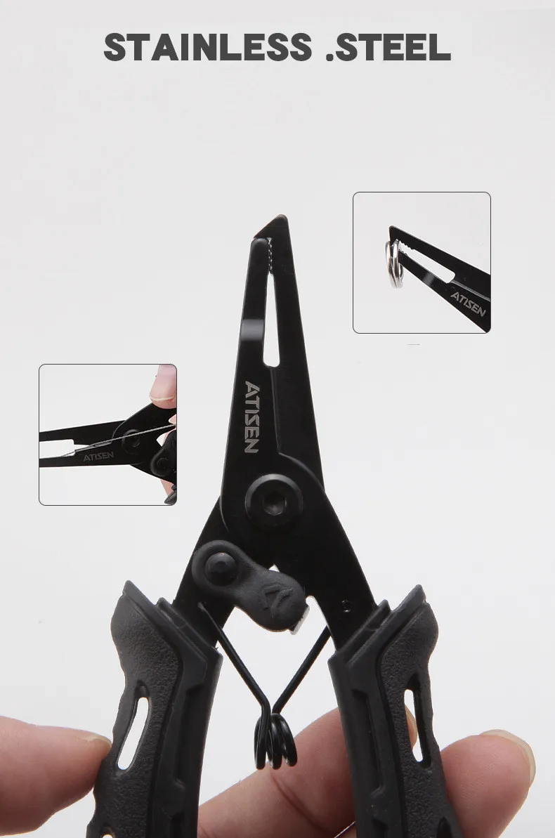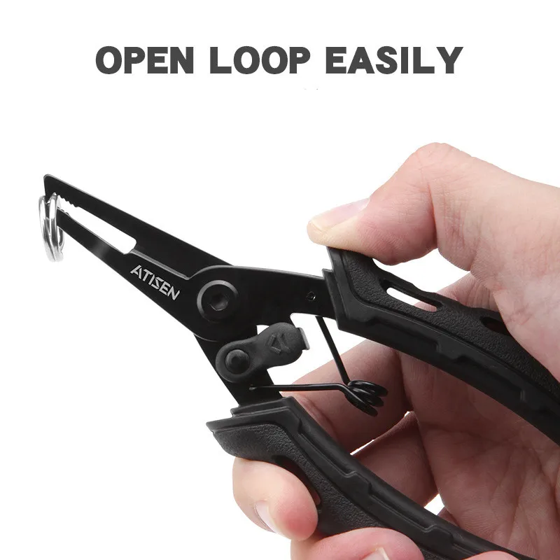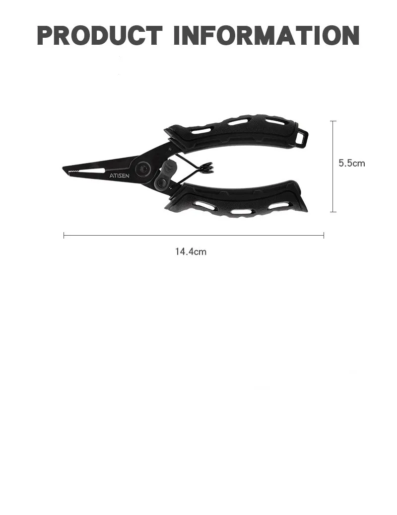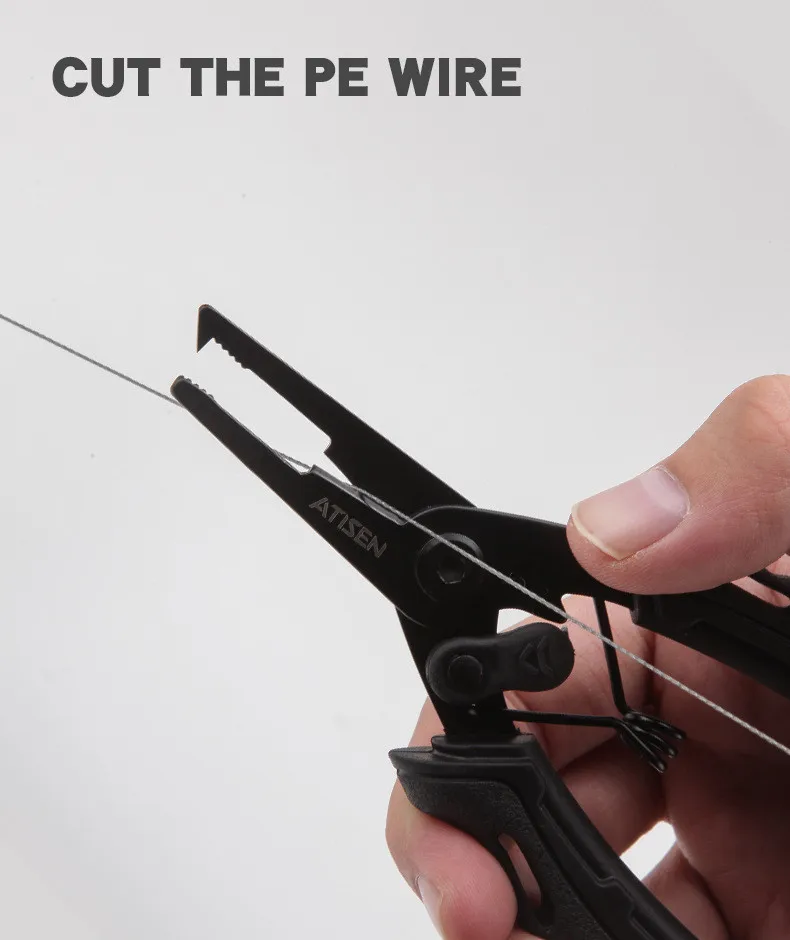 • Corte eficiente: la combinación de alicate-tijera permite un corte rápido y eficiente de sedal, anzuelos y otros aparejos.