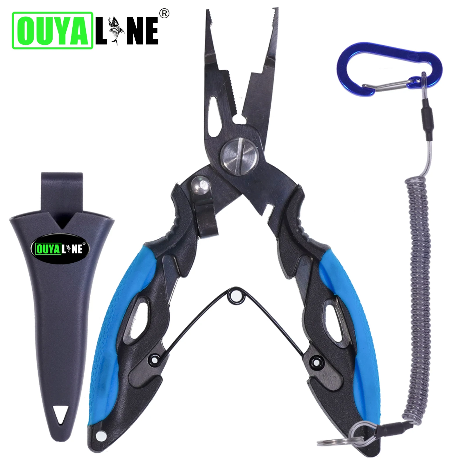 Alicates de pesca multifuncionales con cuerpo de acero inoxidable 420 de alta precisión, alicates de corte de línea de tijera, anillo dividido, herramientas de pesca