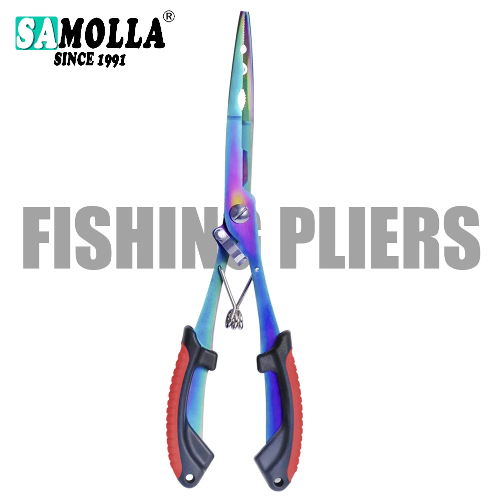 Alicates de pesca multifuncionales alargados, aparejos de acero inoxidable 420, tijeras, removedor de anzuelos, herramientas para exteriores, cortador de línea