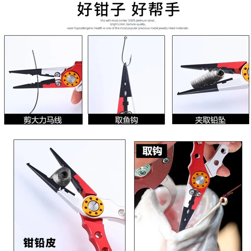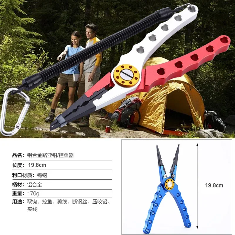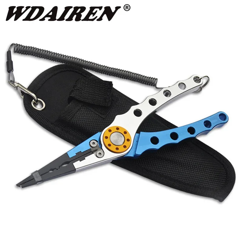 Alicates de pesca multifuncionales WDAIREN, alicates de pesca de aleación de aluminio, cuerda de retención de 17,5 cm, removedor de anzuelos, cortador de línea, pinza de agarre FA-043