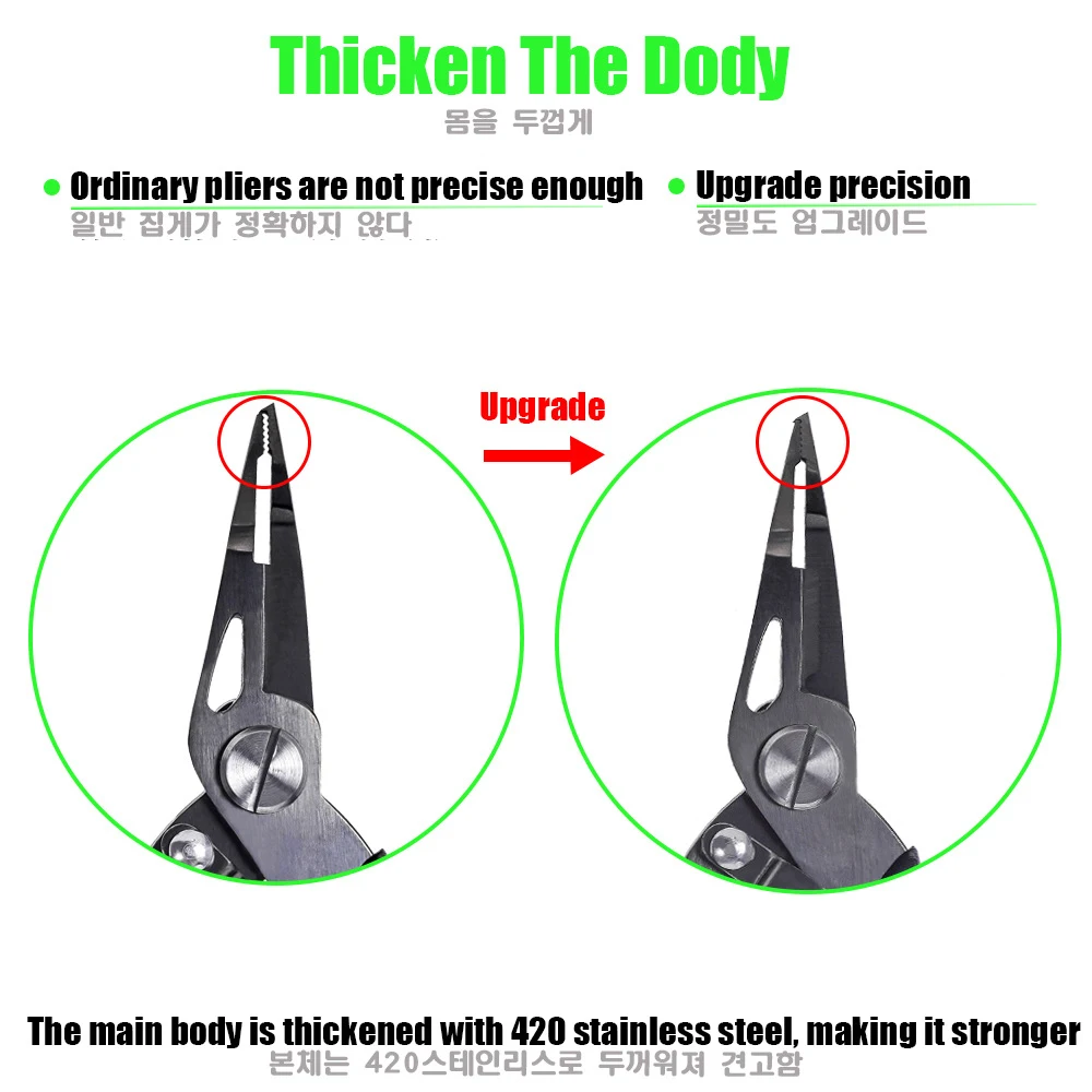 3. Mandíbulas multifunción: agarre y retire cualquier anzuelo con las mordazas dentadas o aproveche las ranuras de prensado para asegurar un peso de tiro dividido o construir un líder de acero.