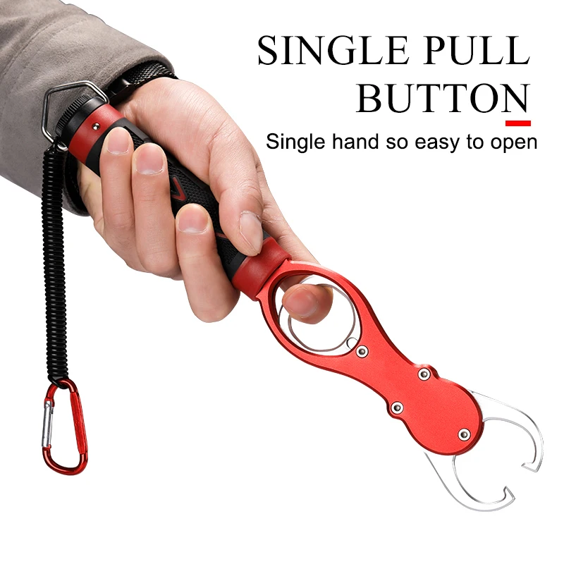 Empuñadura de pesca de aleación de aluminio, ponderable 18Kg. Botón de un solo tirón. Fácil de abrir