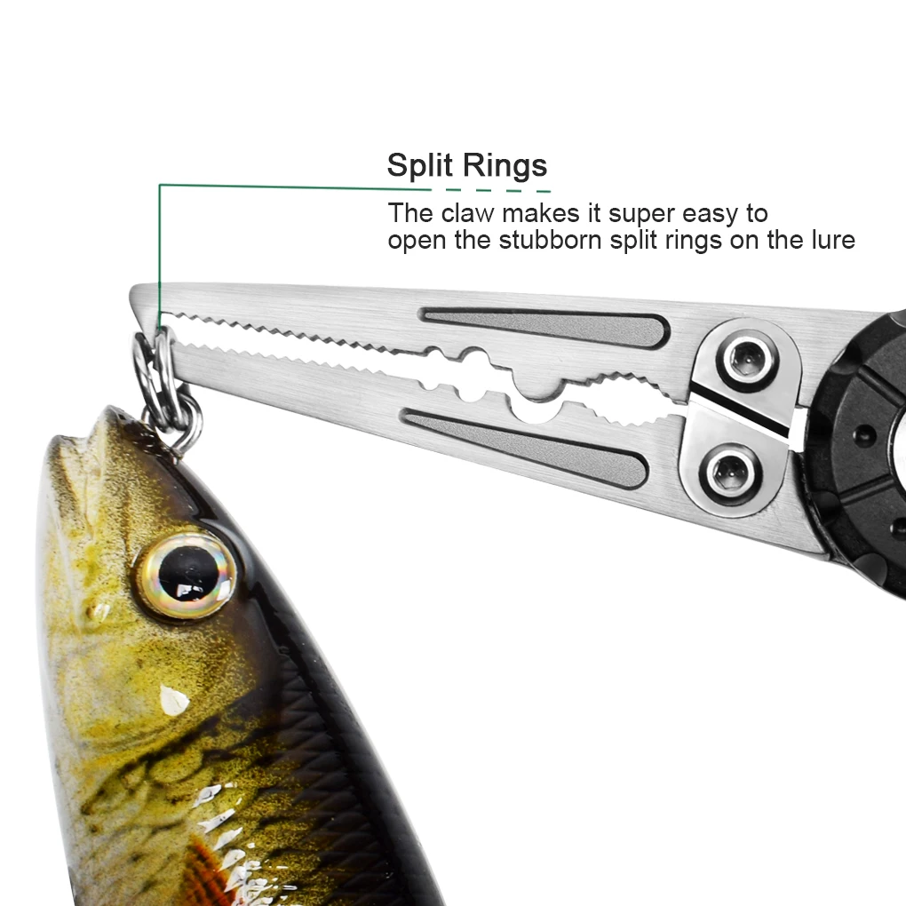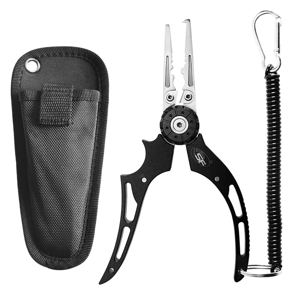 Alicates de pesca SF multiherramientas de acero inoxidable con funda y cordón