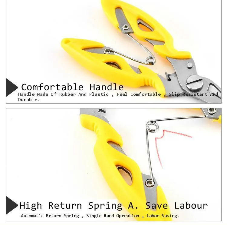 ¡100% nuevo y de alta calidad! Los alicates de pesca multifunción están hechos de acero inoxidable de alta resistencia, ligeros y cómodos de usar, una gran adición a la caja de aparejos de cualquier pescador. Cortar la trenza puede ser un dolor si no tiene el equipo adecuado. Característica: Usando esta herramienta de tijera de pesca para sacar el anzuelo de la boca del pez a mano Alicates de pesca ligeros y multifuncionales Con una funda que puede mantener la pinza en buen estado Hecho de acero inoxidable y plástico de alta calidad. Acción de mordaza asistida por resorte. Diseño ergonómico, cómodo de usar Aplicación: Retire anzuelos, transporte de peces, corte de línea de pescado, corte de alambre de acero, línea de clip, etc. Adecuado para: pesca, actividades al aire libre, uso doméstico Alicates/Tijeras de pesca, puede cortar el sedal y quitar el anzuelo, herramienta muy útil para los pescadores. Adecuado para todo tipo de entornos severos Una gran adición a la caja de aparejos de cualquier pescador